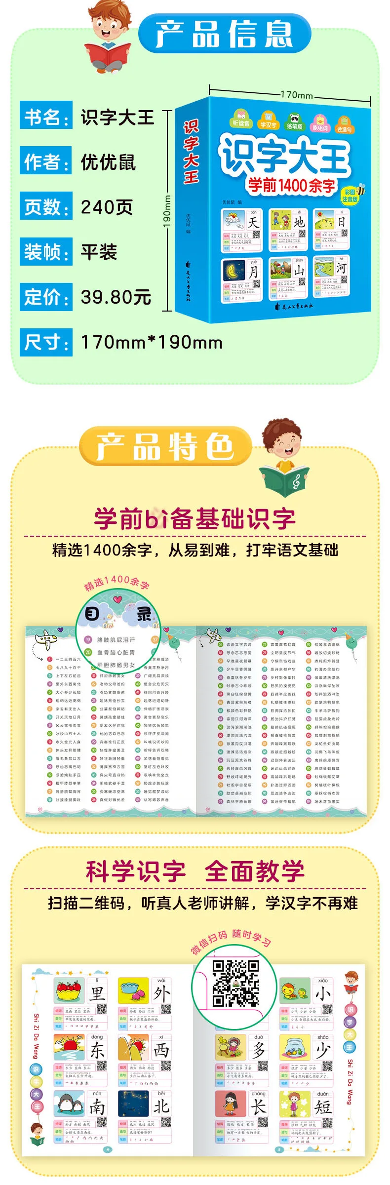 1400 Words Chinese Characters Literacy Book Preschool Kindergarten Student Learning Teaching Material Book Early Education Book