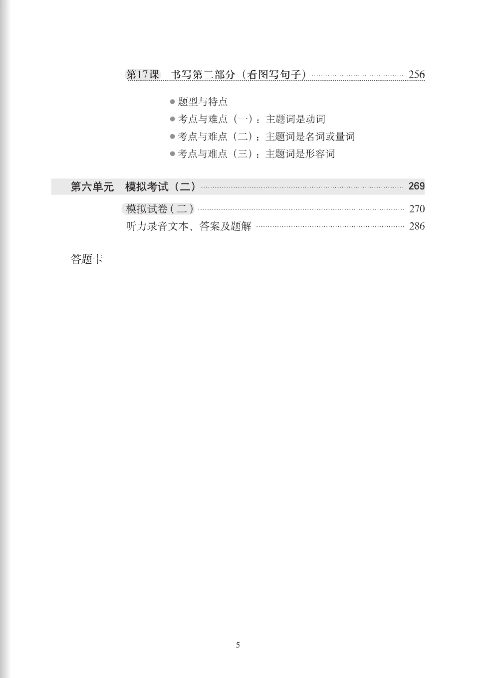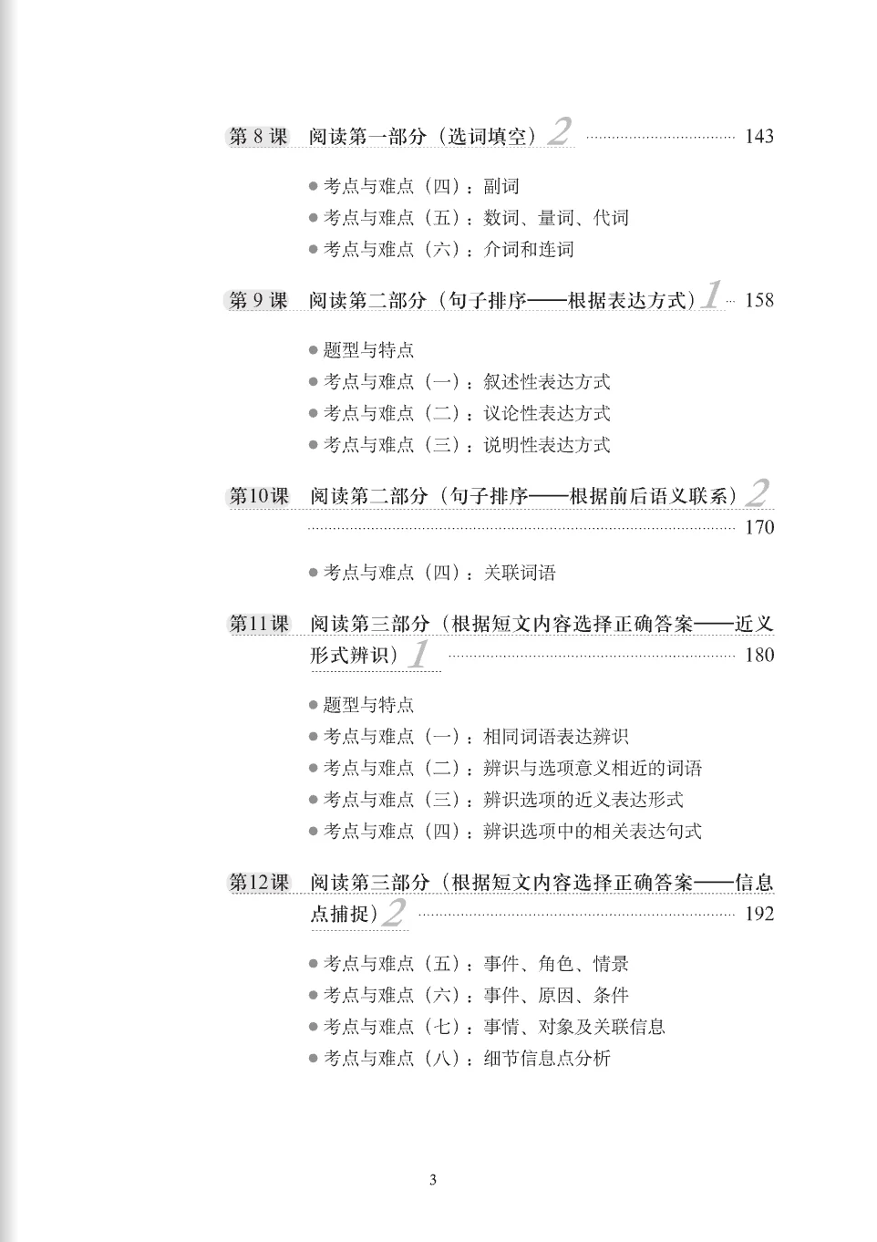 A Short Intensive Course of New HSK, aimed at providing pre-exam guidance and intensive training for the New HSK candidates and training institutions, includes 10 volumes altogether, i.e., the intensive training courses respectively for levels 3~6, the workbooks supporting the intensive courses, the volumes for intermediate spoken Chinese and advanced spoken Chinese. The intensive training course for each level provides two model tests and specific intensive training on the testing points and difficult points about grammar, vocabulary etc., the common errors, and test-taking strategies. The model tests and exercises demonstrate similarity to the official New HSK in difficulty.