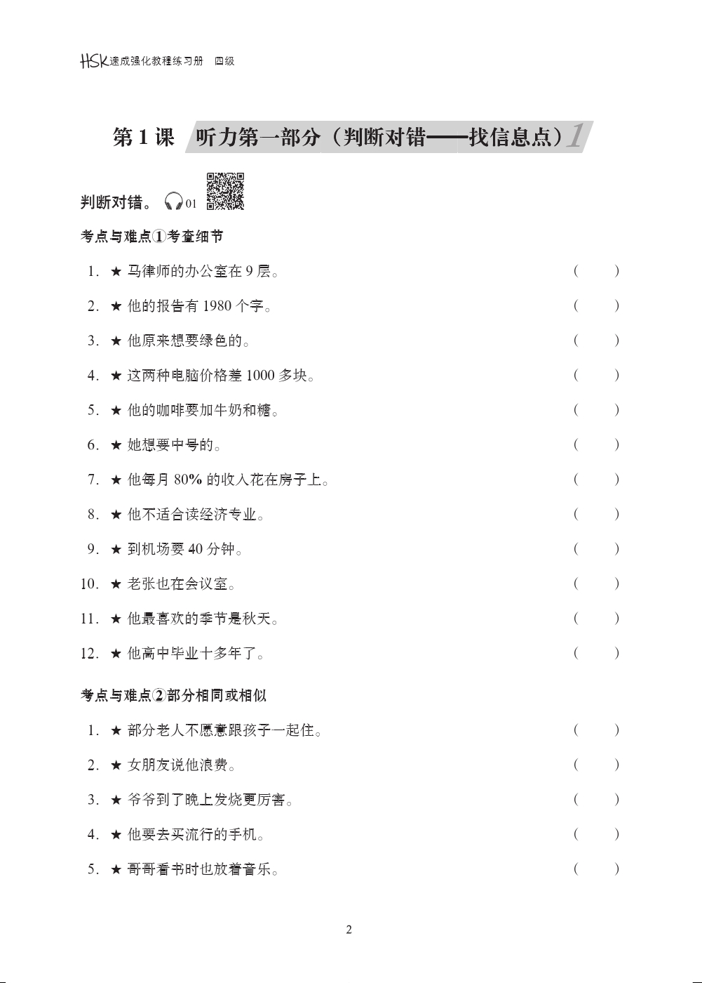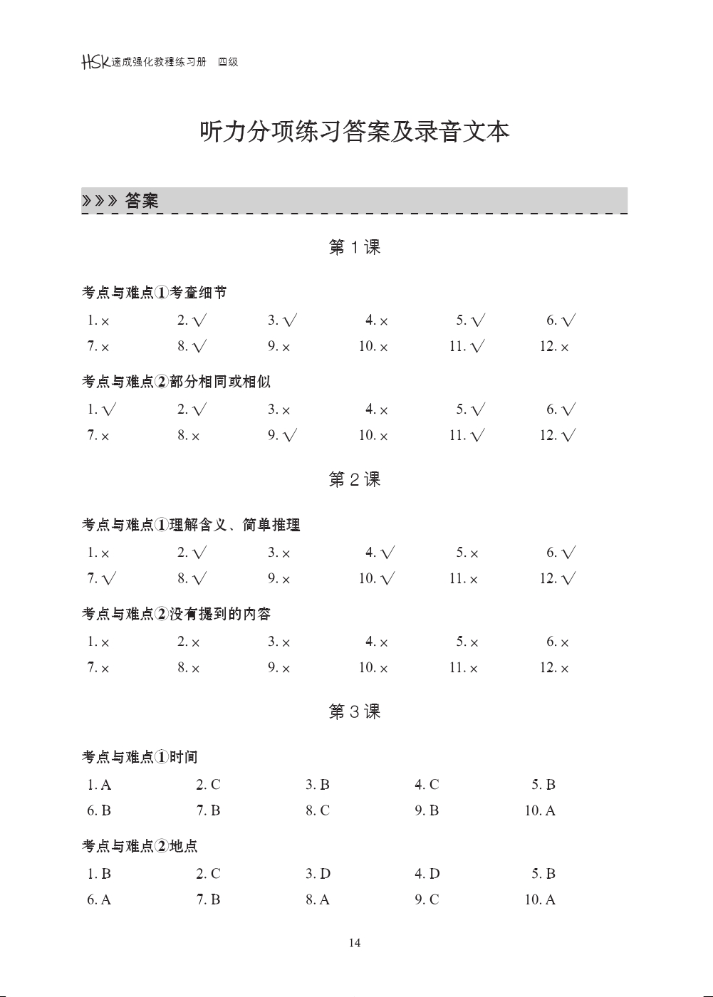 A Short Intensive Course of HSK: Workbook (Level 4)