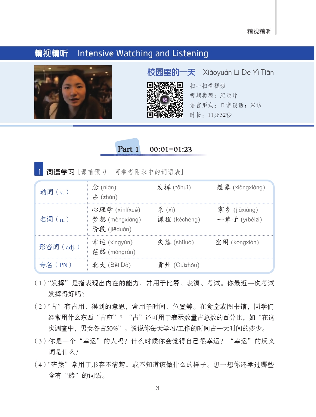 China Focus: Chinese Audiovisual-Speaking Course Intermediate Level 1 Campus Life Learn Chinese Hanyu Pinyin Book