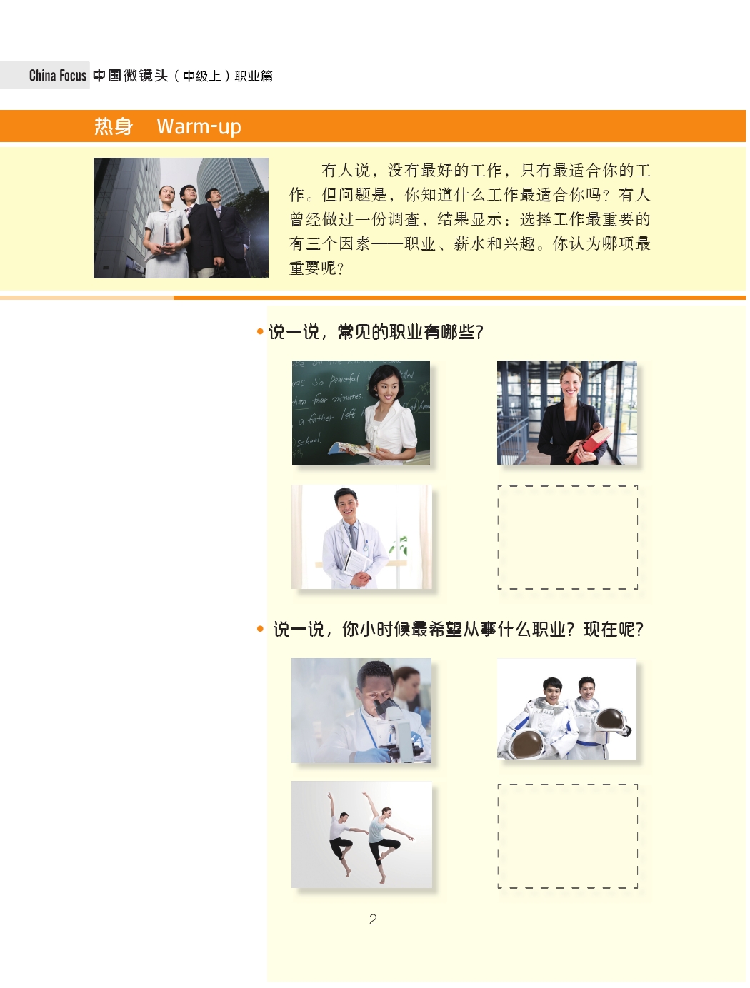 China Focus: Chinese Audiovisual-Speaking Course Intermediate Level 1 Occupations Learn Chinese Hanyu Pinyin Book