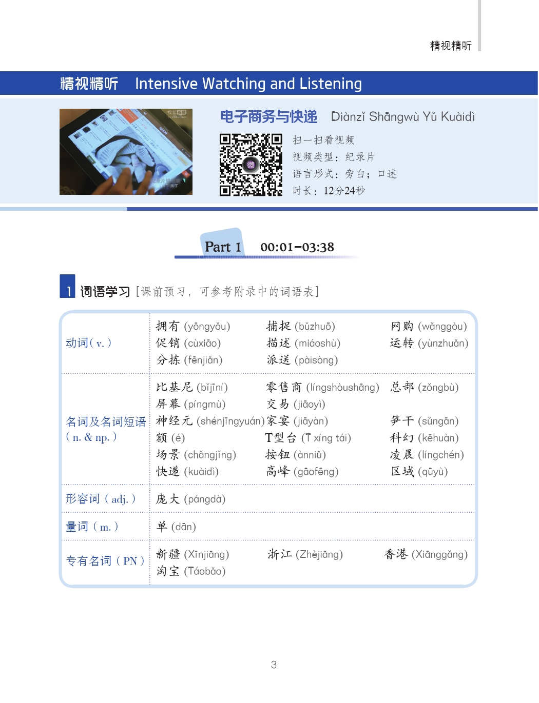 China Focus is a set of comprehensive Chinese teaching materials specially designed for the Chinese audiovisual-speaking course. The video clips are extracted from contemporary Chinese social hot issues, feature programs, news, sitcoms, documentaries, talk shows, interviews, entertainment programs, films and TV plays, micro films, advertisements, songs, etc. Using abundant online video resources, it builds a natural-language-based classroom teaching environment, giving full play to the Chinese audiovisual-speaking course's function of being a window to the society, and promoting the integration of language learning and cultural understanding.
