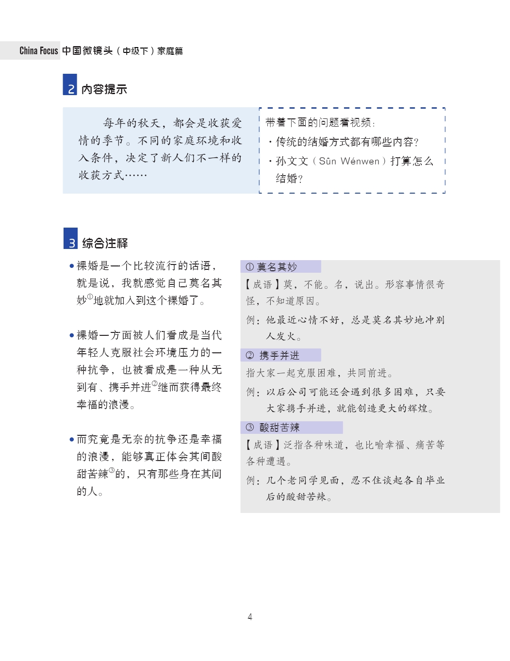 China Focus: Chinese Audiovisual-Speaking Course Intermediate Level 2 Family Learn Chinese Hanyu Pinyin Book