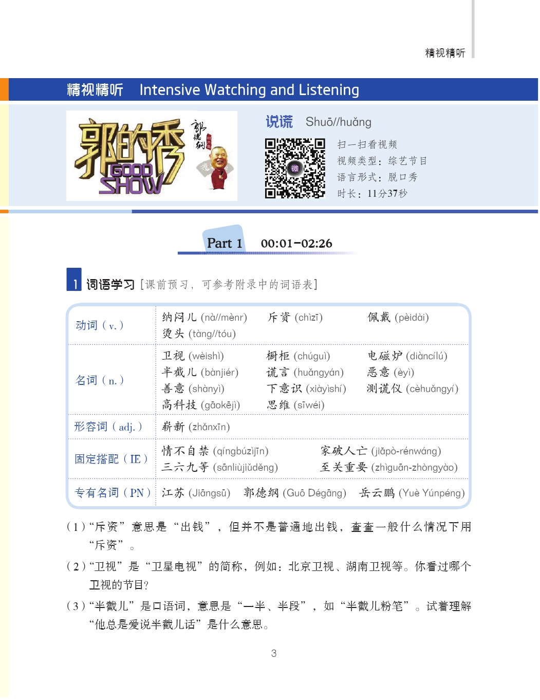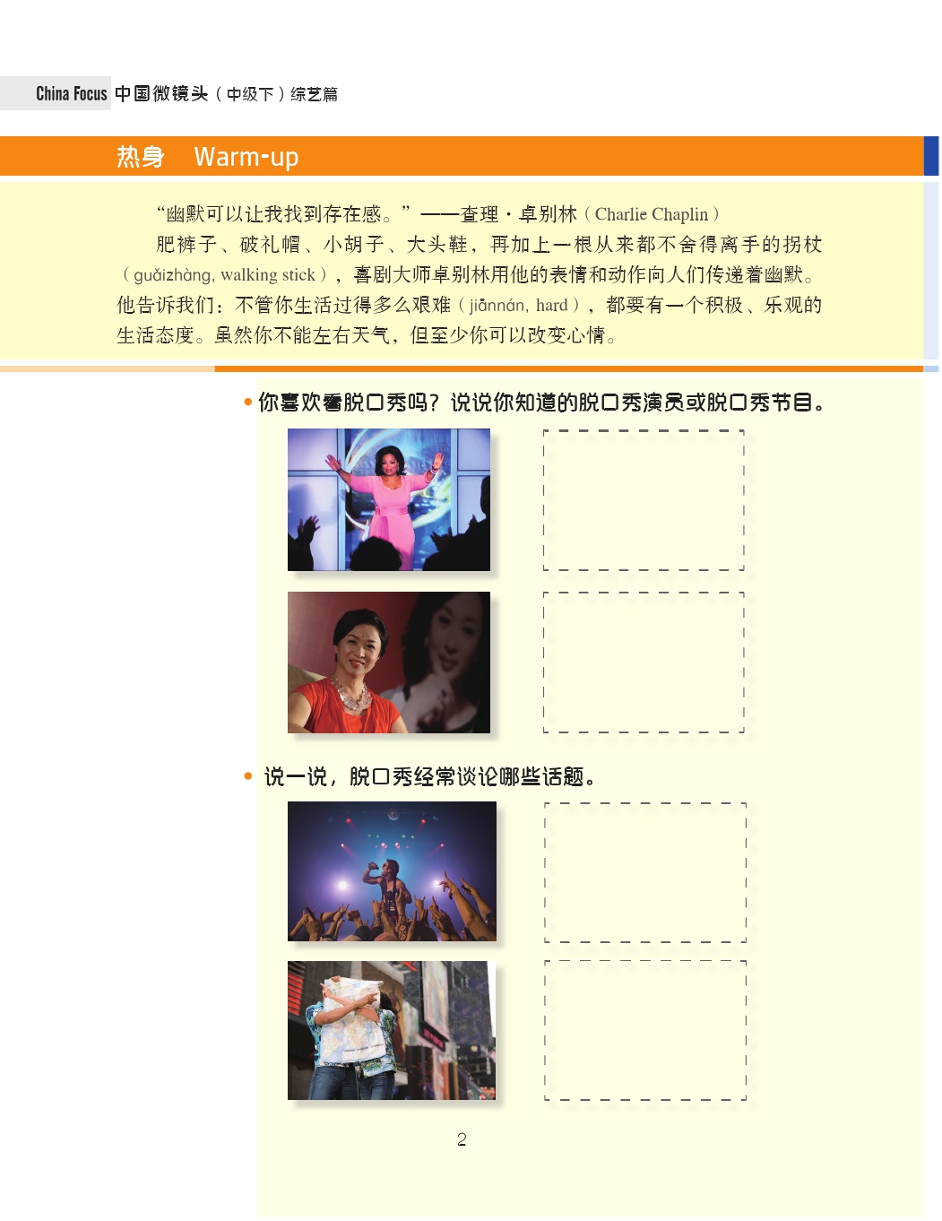 China Focus: Chinese Audiovisual-Speaking Course Intermediate Level 2 Variety Shows Learn Chinese Hanyu Pinyin Book