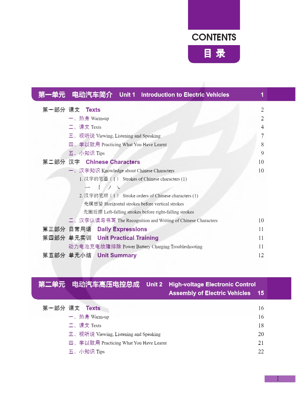 The series includes the textbooks for six popular majors such as logistics management, automotive service engineering technology, e-commerce, mechatronics, computer networking, and hotel management, with each major consisting of the textbooks at the elementary, intermediate and advanced levels. Each volume contains 10 units, with each unit consisting of modules such as “Phonics/Chinese Character, Texts, Communicative Phrases, Practical Training, Summary”.