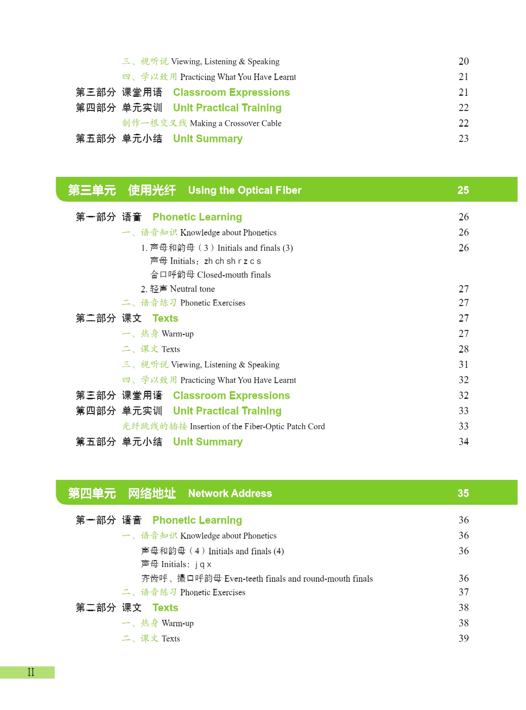 The series includes the textbooks for six popular majors such as logistics management, automotive service engineering technology, e-commerce, mechatronics, computer networking, and hotel management, with each major consisting of the textbooks at the elementary, intermediate and advanced levels. Each volume contains 10 units, with each unit consisting of modules such as “Phonics/Chinese Character, Texts, Communicative Phrases, Practical Training, Summary”.