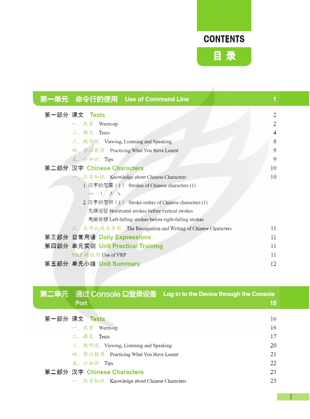 The series includes the textbooks for six popular majors such as logistics management, automotive service engineering technology, e-commerce, mechatronics, computer networking, and hotel management, with each major consisting of the textbooks at the elementary, intermediate and advanced levels. Each volume contains 10 units, with each unit consisting of modules such as “Phonics/Chinese Character, Texts, Communicative Phrases, Practical Training, Summary”.