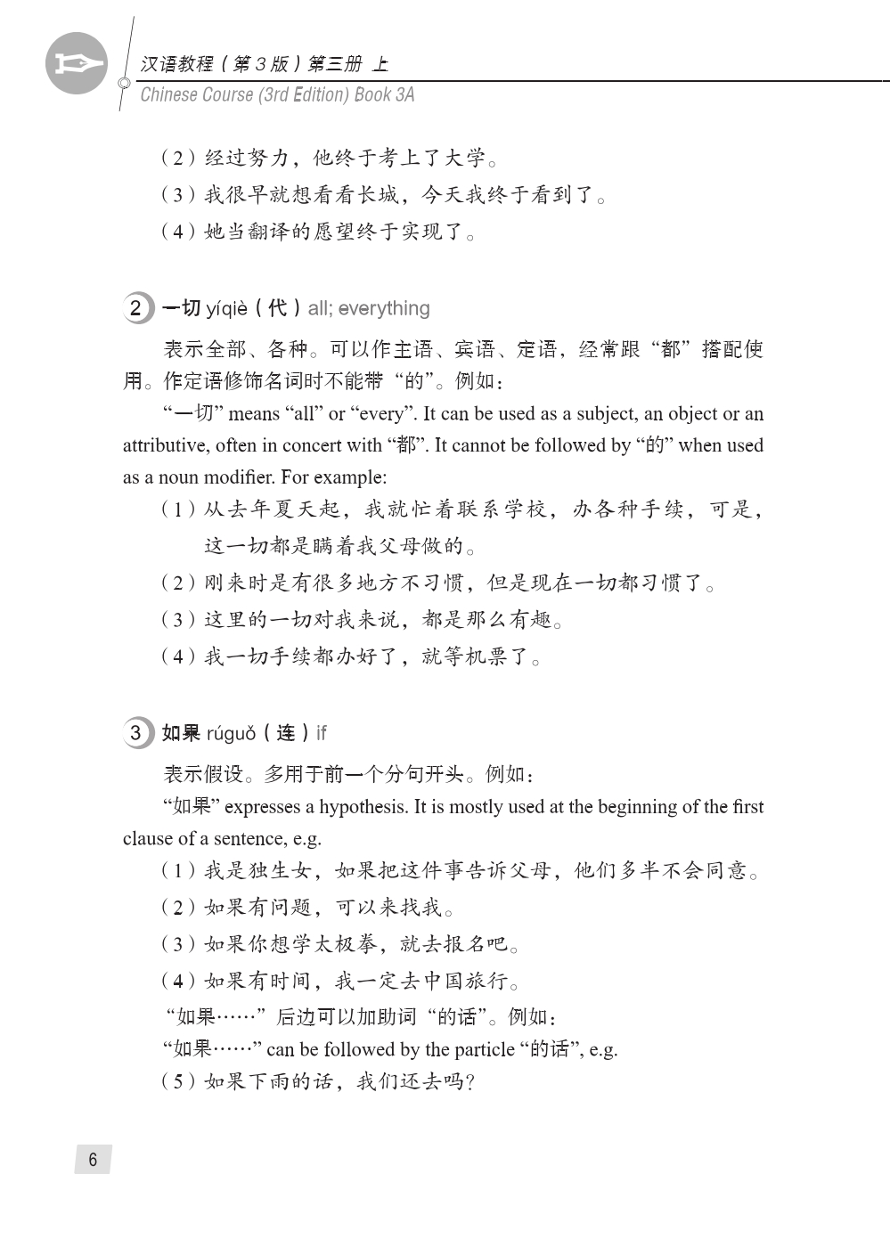 Chinese Course is a series of comprehensive Chinese learning materials designed for international students studying in China. It consists of 6 volumes, which take a degree-granting institution one year to finish. It is one of the most popular and influential textbook series for undergraduate education targeted at foreigners. The first two editions have sold more than two million copies in total.