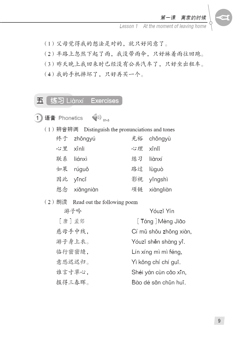 This is Book 1B of the third edition, including a total of 10 lessons. It follows Book 1A and comes to the stage of grammar and sentence patterns. Each lesson basically consists of five sections: text, new words, notes, phonetics/grammar, and exercises. The texts are mostly practical conversations; they are where grammar and vocabulary are used. The new words are all common words. The exercises come in diverse types, including comprehension, imitation, communication, etc.