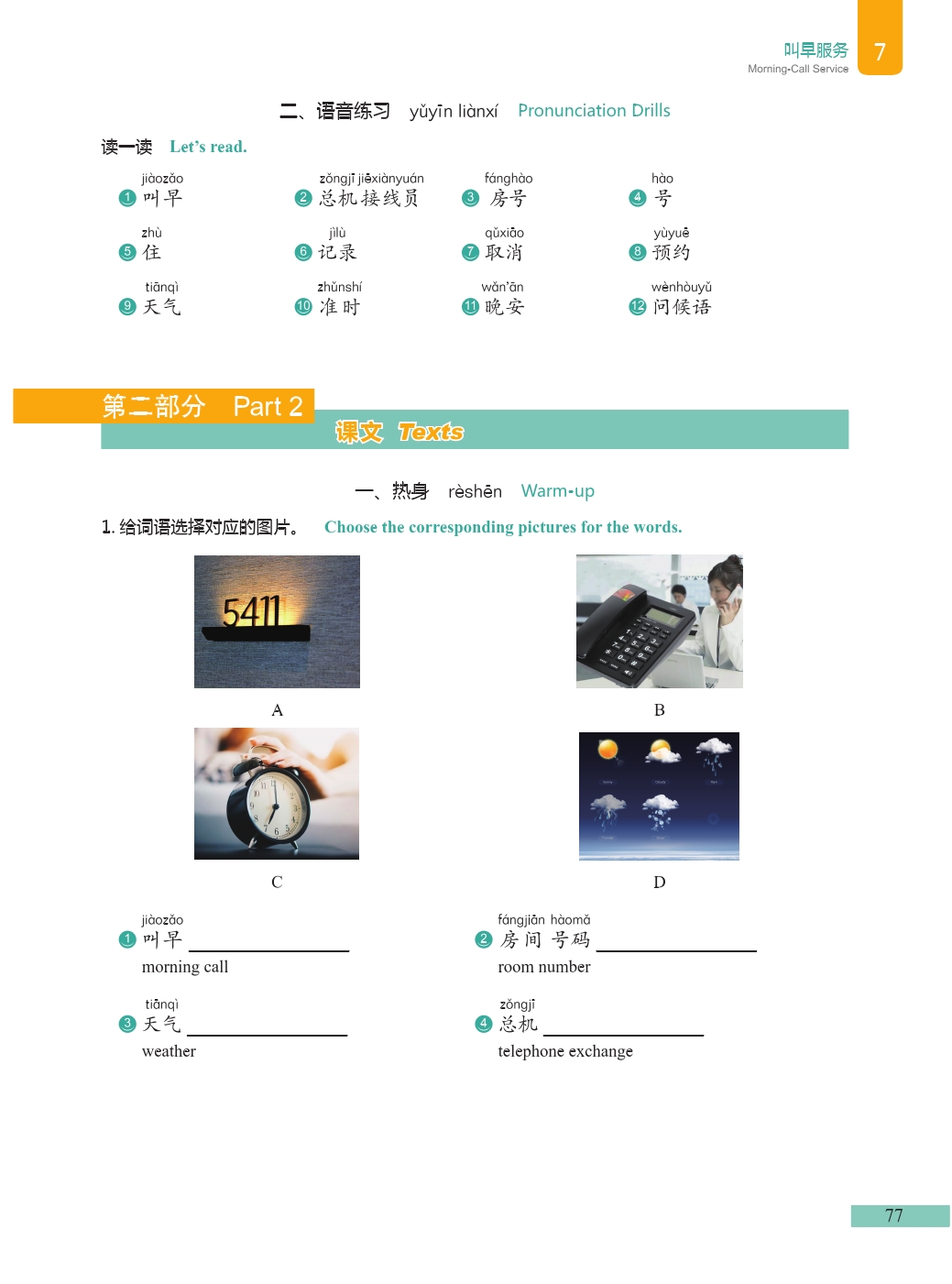 This series adopts a Chinese teaching and textbook compilation model combining special language skills and vocational skills training. Starting from the basic phonetic knowledge learning and job cognition at the elementary level, this series integrates “Chinese + Vocational Skills” into the working scene dialogues, breaking down the job into various tasks, solving lexical cognition problems by means of picture cognition, solving the problem of the mismatch between learners’ mastery of Chinese vocabulary and professional skills by means of displaying videos, stressing the practicality of skills, and focusing on “learning by doing”.