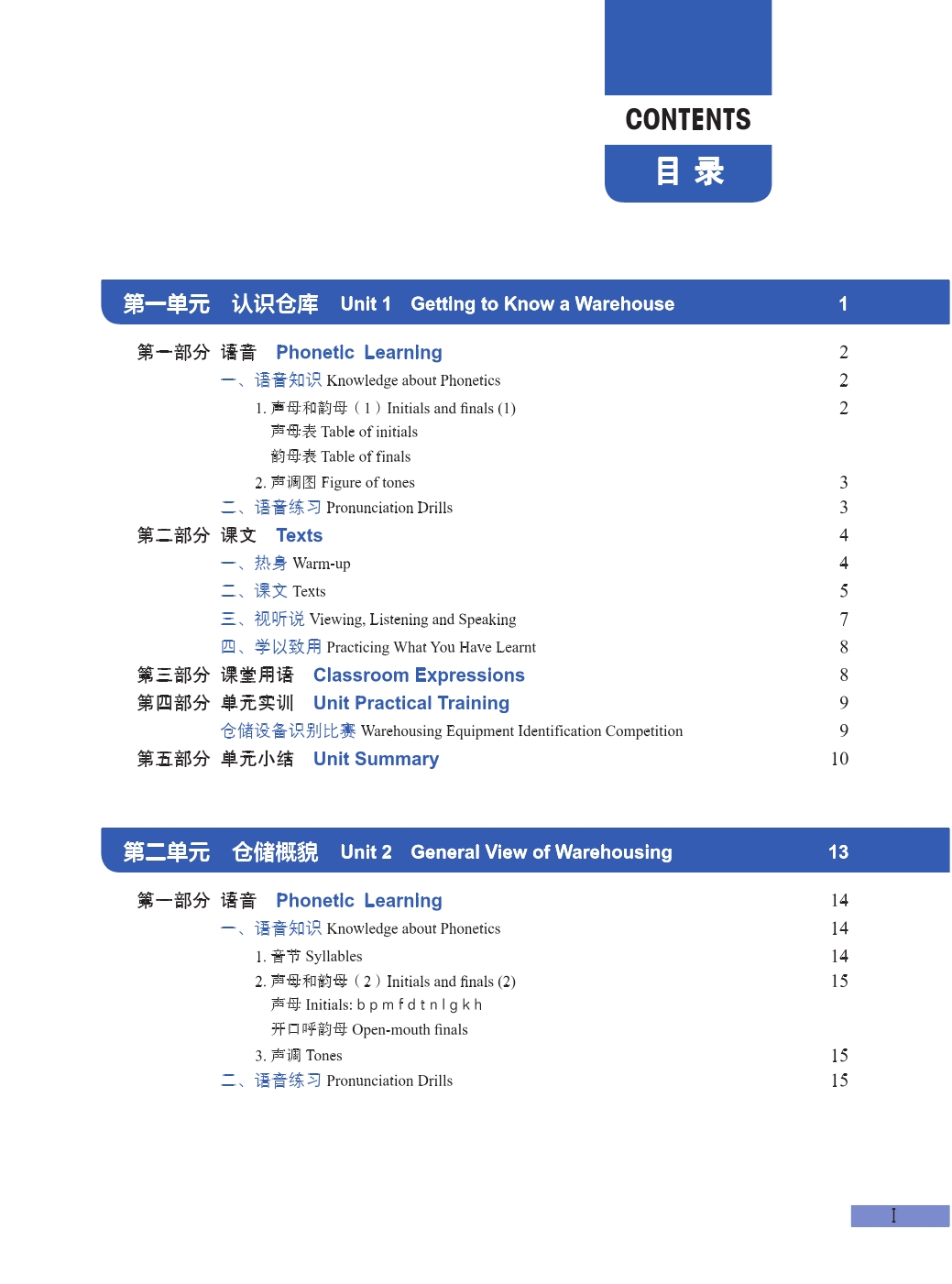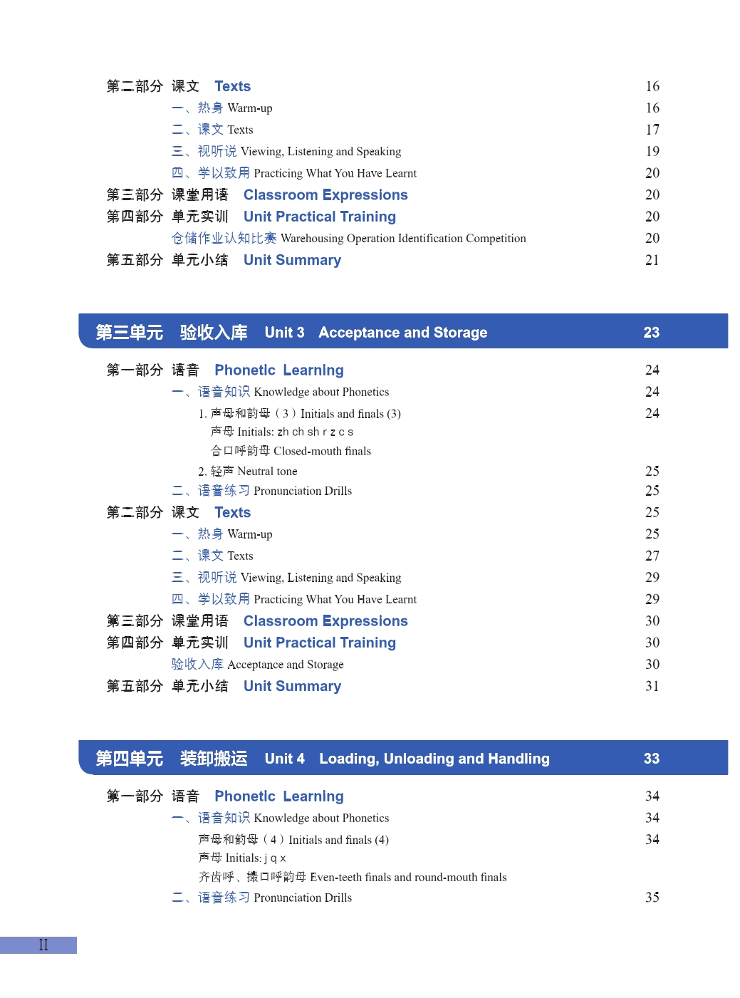 The series includes the textbooks for six popular majors such as logistics management, automotive service engineering technology, e-commerce, mechatronics, computer networking, and hotel management, with each major consisting of the textbooks at the elementary, intermediate and advanced levels. Each volume contains 10 units, with each unit consisting of modules such as “Phonics/Chinese Character, Texts, Communicative Phrases, Practical Training, Summary”.
