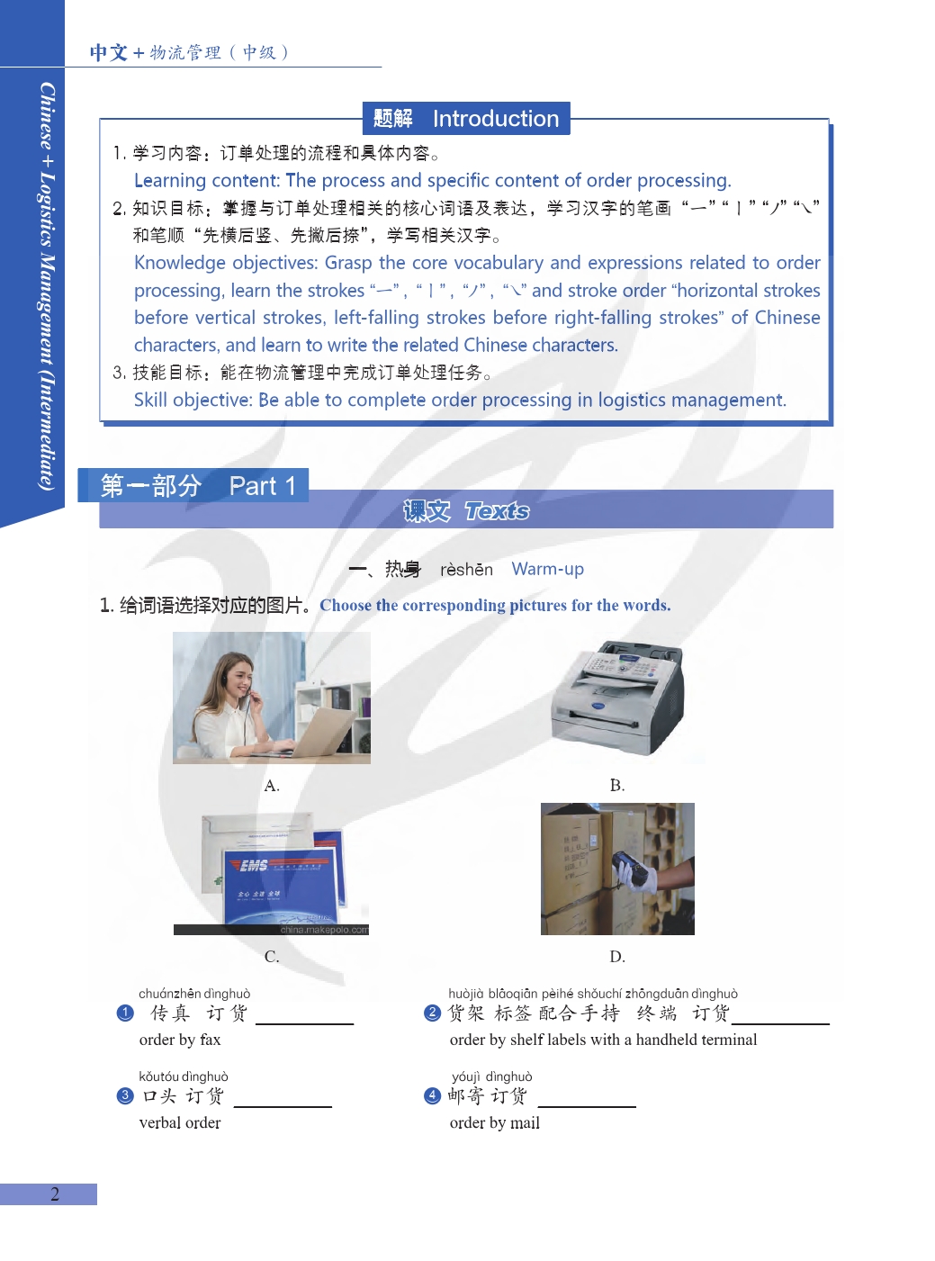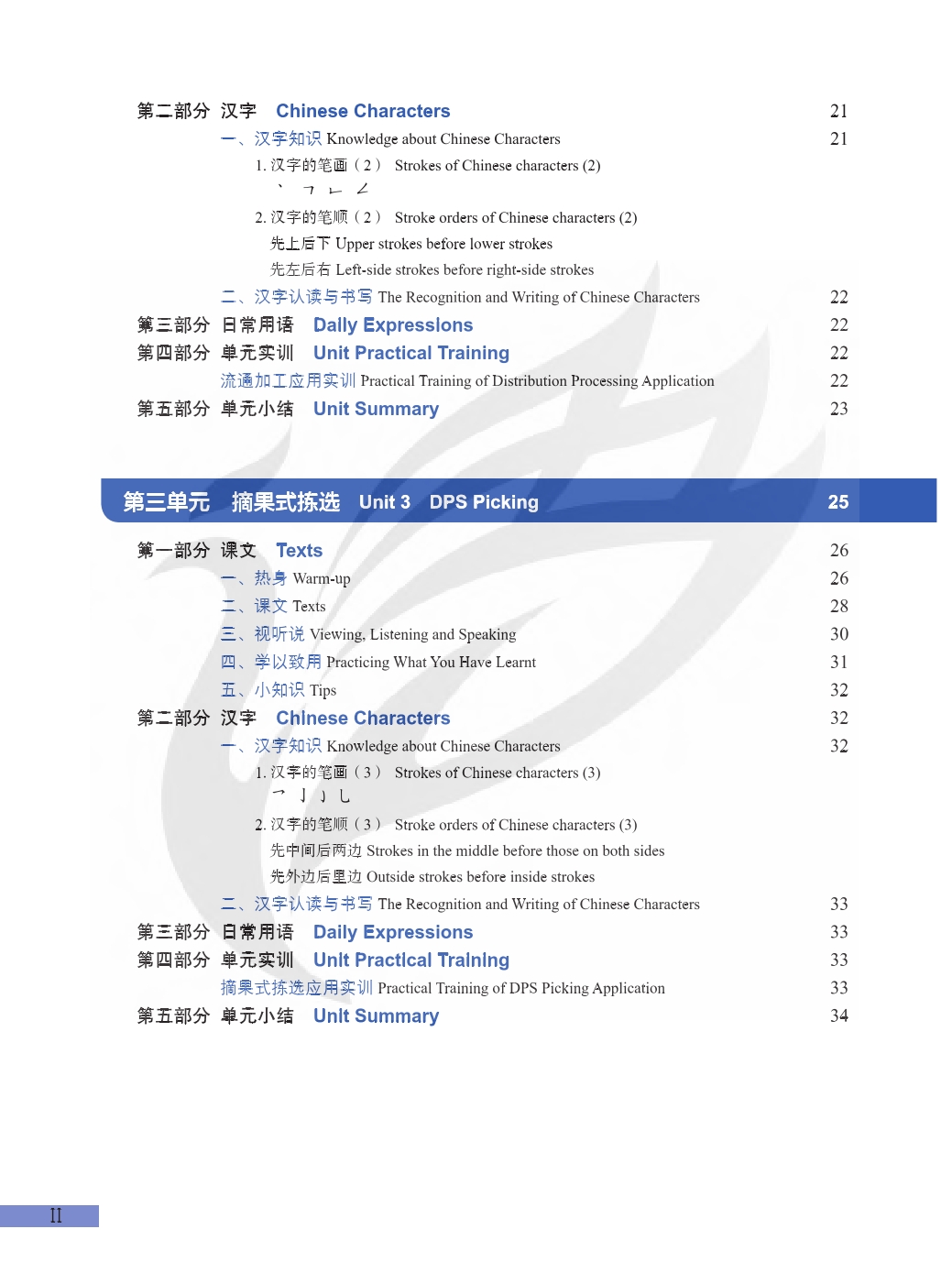 The series includes the textbooks for six popular majors such as logistics management, automotive service engineering technology, e-commerce, mechatronics, computer networking, and hotel management, with each major consisting of the textbooks at the elementary, intermediate and advanced levels. Each volume contains 10 units, with each unit consisting of modules such as “Phonics/Chinese Character, Texts, Communicative Phrases, Practical Training, Summary”.