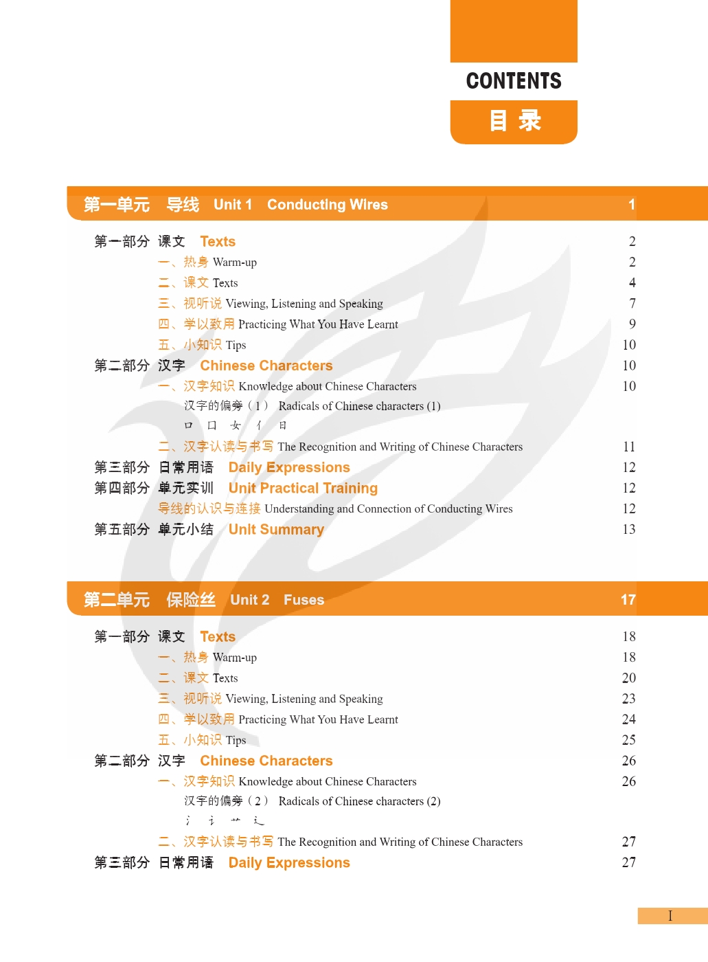 The series includes the textbooks for six popular majors such as logistics management, automotive service engineering technology, e-commerce, mechatronics, computer networking, and hotel management, with each major consisting of the textbooks at the elementary, intermediate and advanced levels. Each volume contains 10 units, with each unit consisting of modules such as “Phonics/Chinese Character, Texts, Communicative Phrases, Practical Training, Summary”.