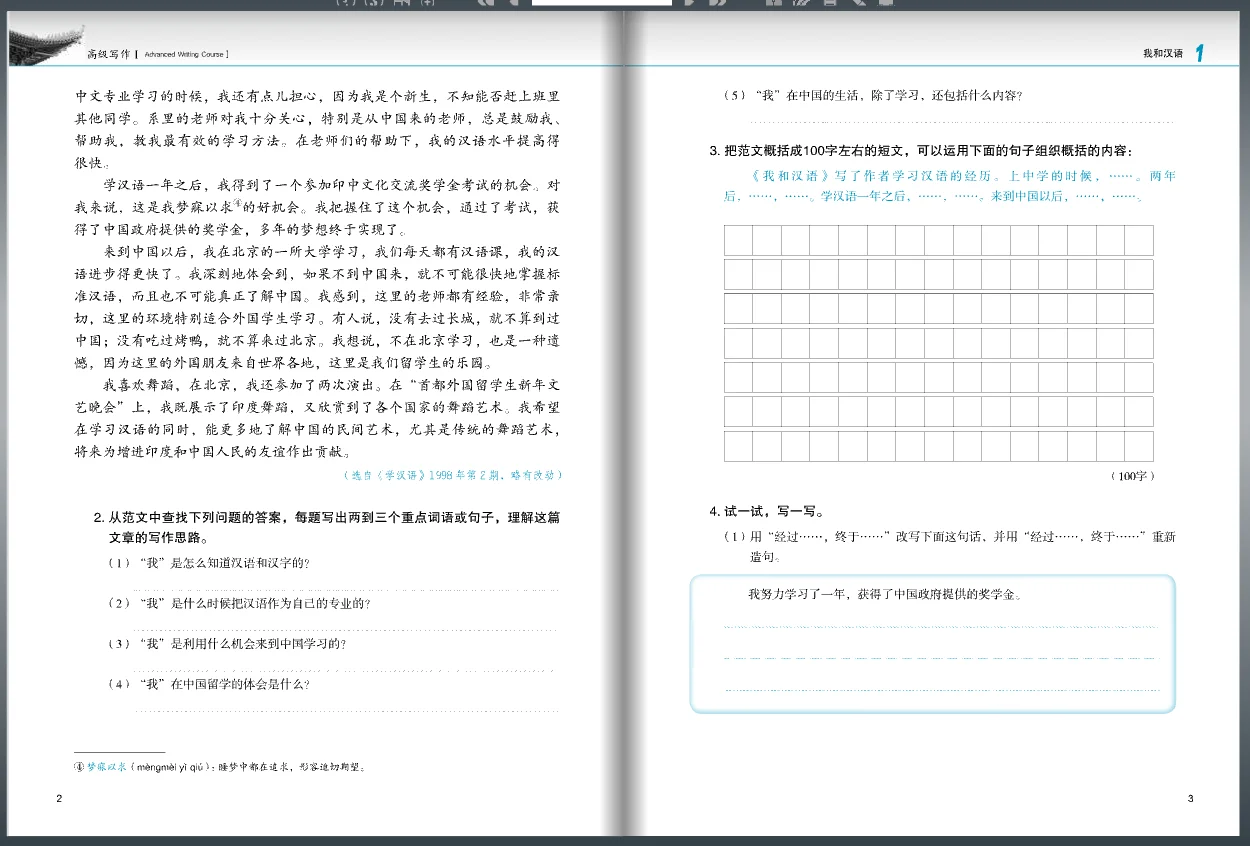 The Advanced Comprehensive Course (Ⅰ) , following the Intermediate Comprehensive Course (Ⅱ), is suitable for learners who have finished learning the Intermediate Comprehensive Course (Ⅱ) or other textbooks at the same level and mastered basic or intermediate Chinese grammar as well as 3,500-4,000 common words and who can exchange ideas with others on common topics and are capable of general narrative, expositive and argumentative expression. In the selection of texts, the diversity of language styles and registers are stressed, the cultural insights and connotations are paid attention to, and the study of written language is emphasized. In addition, the format of the book is designed based on the concepts of facilitating users and serving education so that the listening, speaking, reading and writing skills of learners at the advanced level can be improved simultaneously.