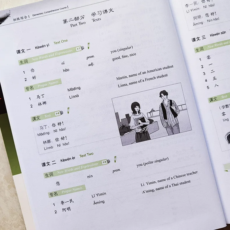 The Elementary Comprehensive Course (I), with altogether 30 lessons, is suitable for total beginners or beginners who can communicate in the simplest Chinese. After finishing this volume, learners can master: (1) the most essential Chinese phonetic knowledge and pronunciation skills; (2) common Chinese words at the elementary stage; (3) basic patterns of Chinese sentences; (4) basic stokes, stroke order and structures of Chinese characters as well as the ability to write the characters; (5) the ability to communicate in elementary Chinese and use Chinese to solve simple problems in their study and daily life; (6) the basic learning and communication strategies; (7) a preliminary knowledge of the Chinese culture related to communication and a fundamental cross-cultural awareness.