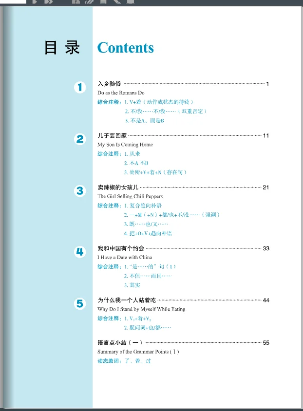 Combining the cultivation of integrated language skills with the training of specific language skills in its compilation, this set of textbooks can be divided into three levels (elementary, intermediate and advanced) and five series (comprehensive, listening, speaking, reading and writing), among which the comprehensive series is the bulk and the others are the accompanying series. The overall purpose is to develop and improve the students’ Chinese language skills, Chinese communication skills, integrated Chinese capabilities as well as enhance their interest and ability in learning Chinese.