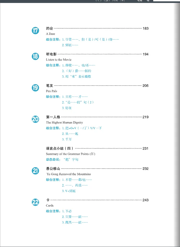 The Advanced Comprehensive Course (Ⅰ) , following the Intermediate Comprehensive Course (Ⅱ), is suitable for learners who have finished learning the Intermediate Comprehensive Course (Ⅱ) or other textbooks at the same level and mastered basic or intermediate Chinese grammar as well as 3,500-4,000 common words and who can exchange ideas with others on common topics and are capable of general narrative, expositive and argumentative expression. In the selection of texts, the diversity of language styles and registers are stressed, the cultural insights and connotations are paid attention to, and the study of written language is emphasized. In addition, the format of the book is designed based on the concepts of facilitating users and serving education so that the listening, speaking, reading and writing skills of learners at the advanced level can be improved simultaneously.