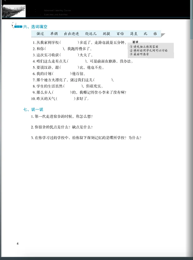 The Advanced Comprehensive Course (Ⅰ) , following the Intermediate Comprehensive Course (Ⅱ), is suitable for learners who have finished learning the Intermediate Comprehensive Course (Ⅱ) or other textbooks at the same level and mastered basic or intermediate Chinese grammar as well as 3,500-4,000 common words and who can exchange ideas with others on common topics and are capable of general narrative, expositive and argumentative expression. In the selection of texts, the diversity of language styles and registers are stressed, the cultural insights and connotations are paid attention to, and the study of written language is emphasized. In addition, the format of the book is designed based on the concepts of facilitating users and serving education so that the listening, speaking, reading and writing skills of learners at the advanced level can be improved simultaneously.