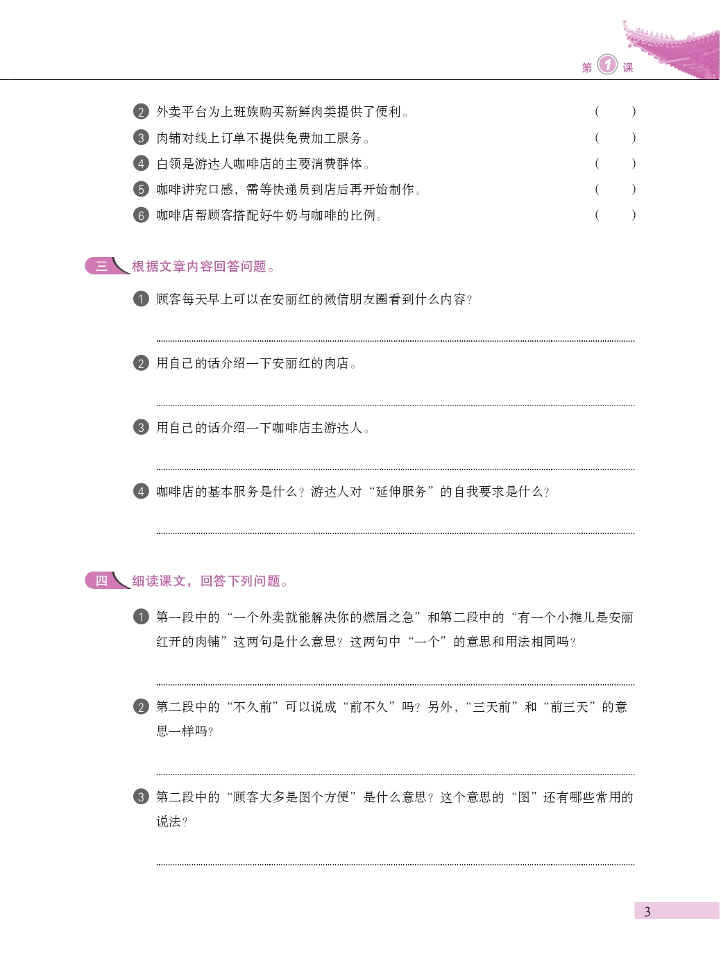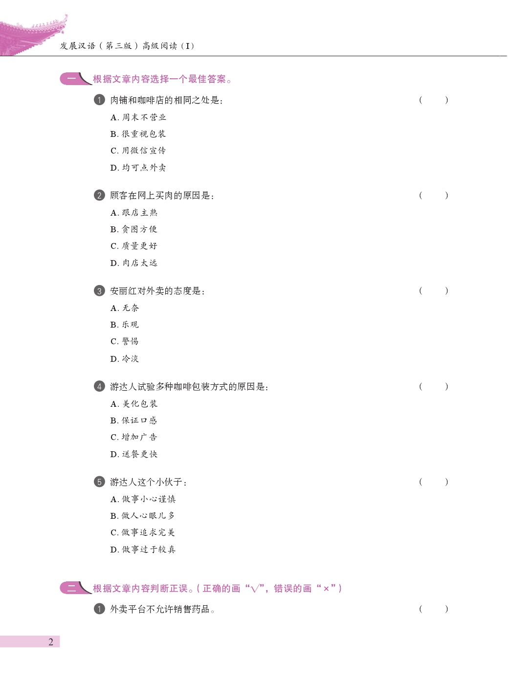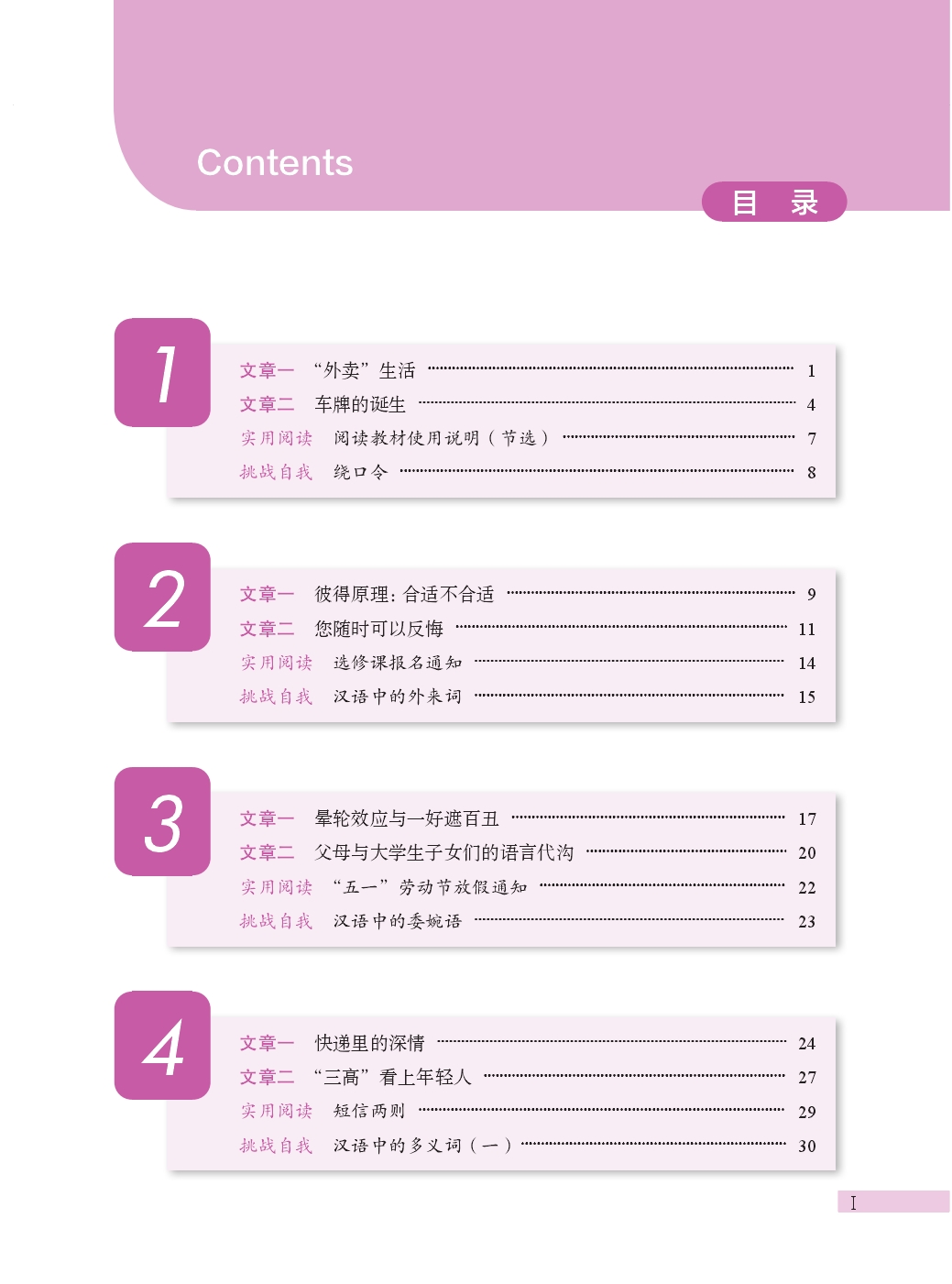Developing Chinese (3rd Edition) Advanced Reading Course (I) is a reading textbook of the Developing Chinese series, which is applicable for learners who have studied the intermediate Chinese courses such as Developing Chinese Intermediate Comprehensive Course (II) and Developing Chinese Intermediate Reading Course (II), or those who are at advanced level of Chinese Learning. The textbook has 14 lessons in total, and each lesson consists of two intensive reading texts, one practical reading text and one self-challenge text. The reading materials involved are rich in topics, practical in content, varied in practice, and moderate in difficulty, which can comprehensively improve learners’ reading skill and comprehensive language skills such as “reading and speaking”, enhance their interest in reading, and improve their comprehensive reading comprehension ability.