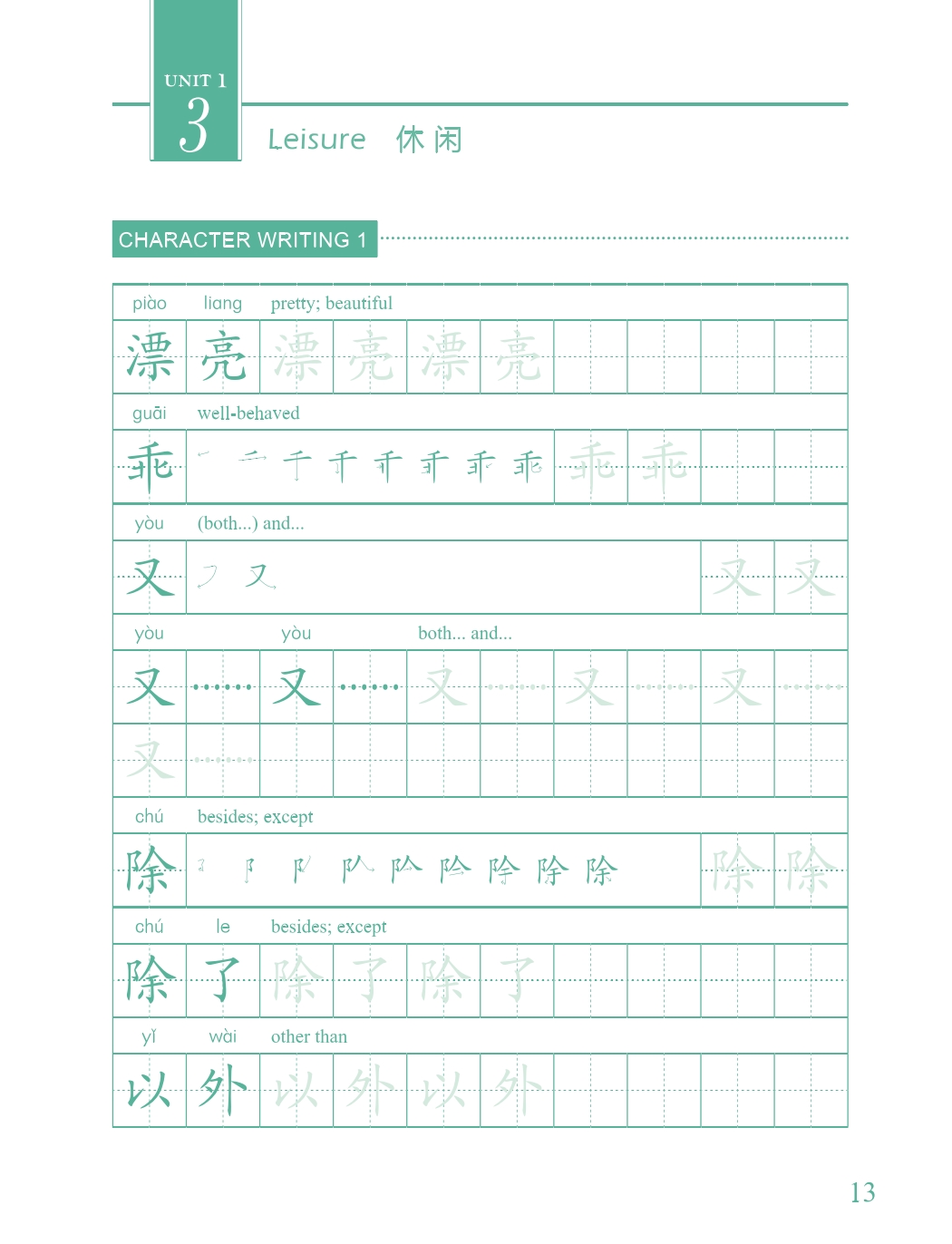 · The purpose of this Exercise Book is to help students lay a good foundation learning Chinese characters through repetition.