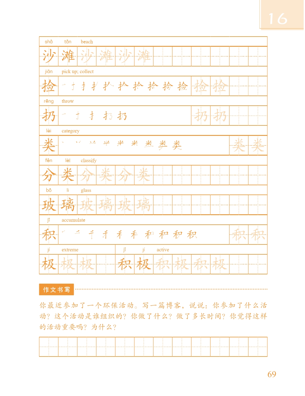 "Exercise Book for Writing Chinese Characters and Essays" is an accessory product of the series Easy Steps to Chinese (2nd Edition).