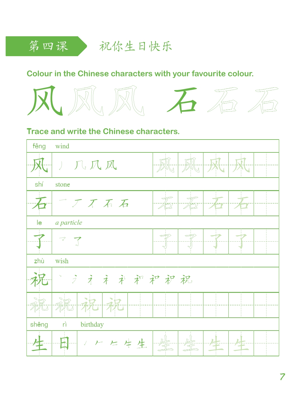 ? Students are expected to write the strokes of each Chinese character following the stroke order, thus developing the good habit of writing Chinese characters accurately and neatly from the very beginning.