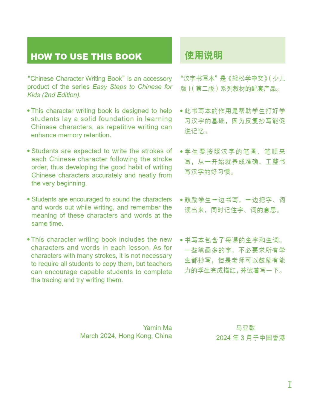 “Chinese Character Writing Book” is an accessory product of the series Easy Steps to Chinese for Kids (2nd Edition).