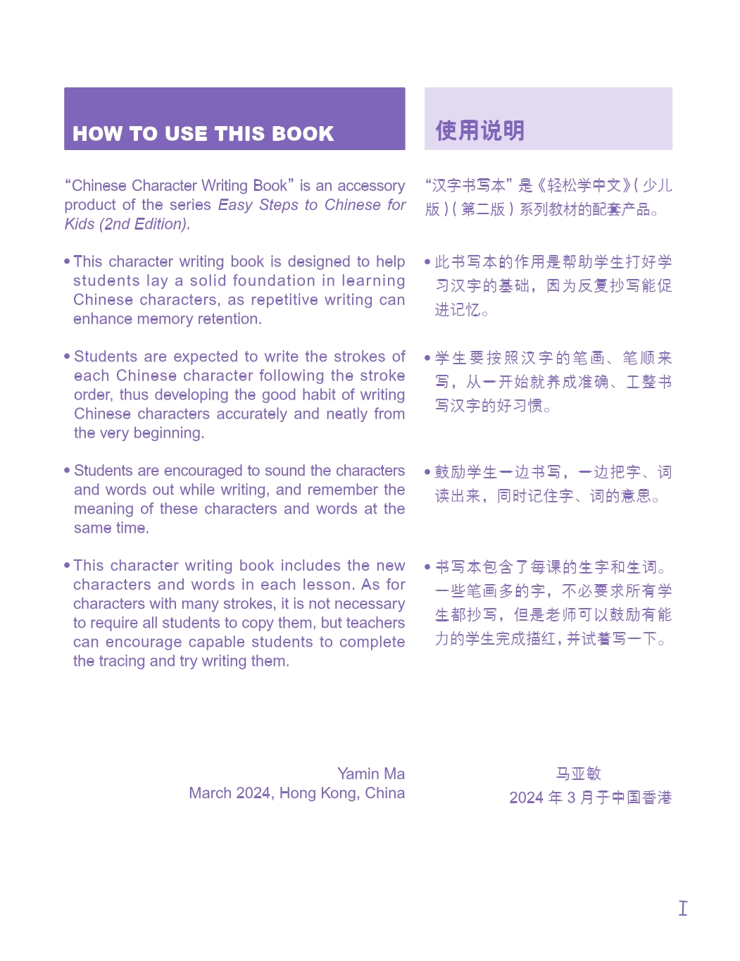 ■ Students are expected to write the strokes of each Chinese character following the stroke order, thus developing the good habit of writing Chinese characters accurately and neatly from the very beginning.