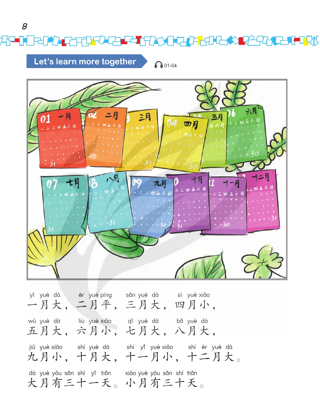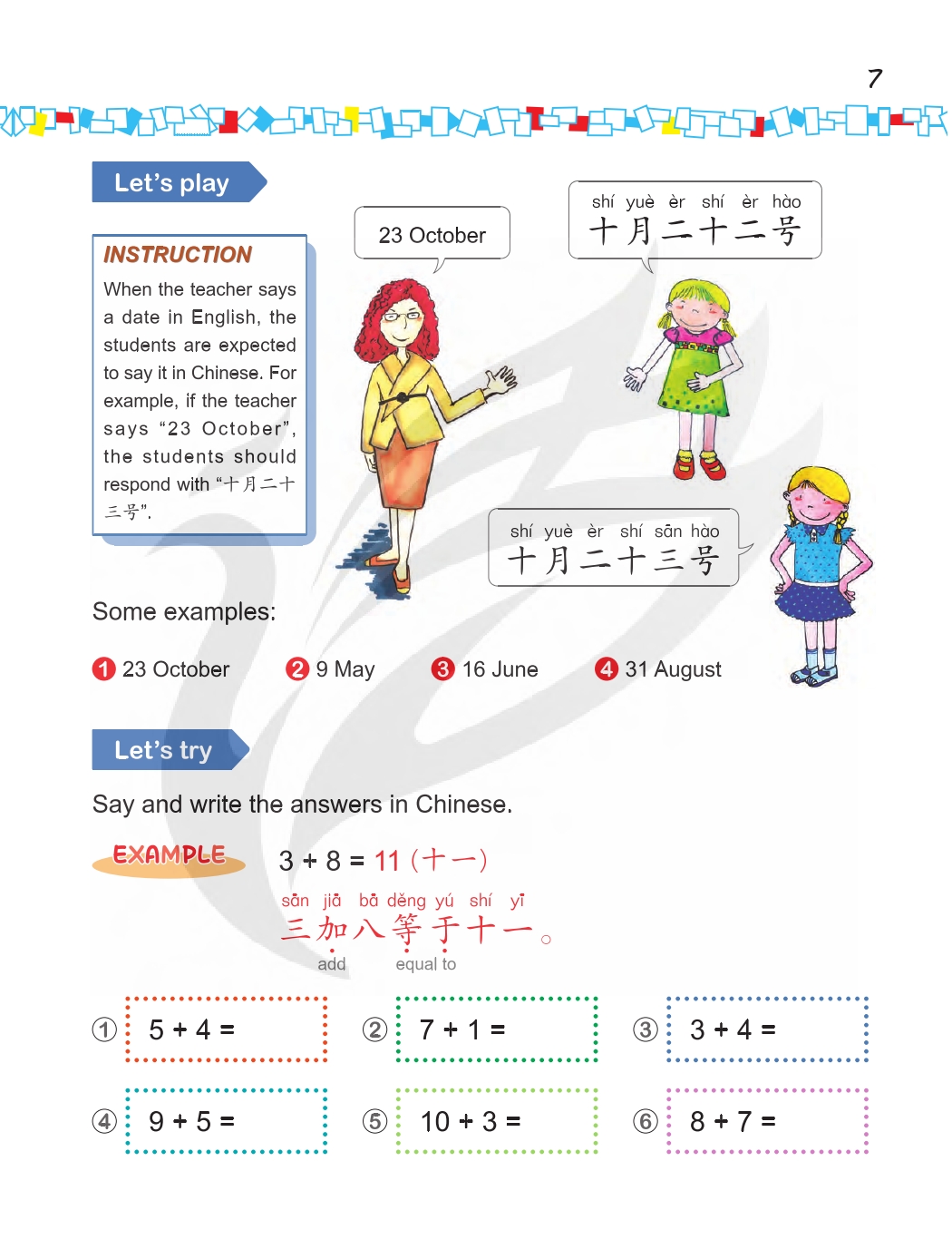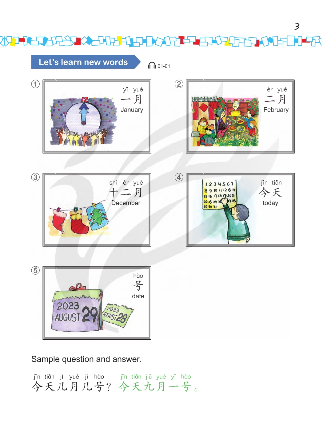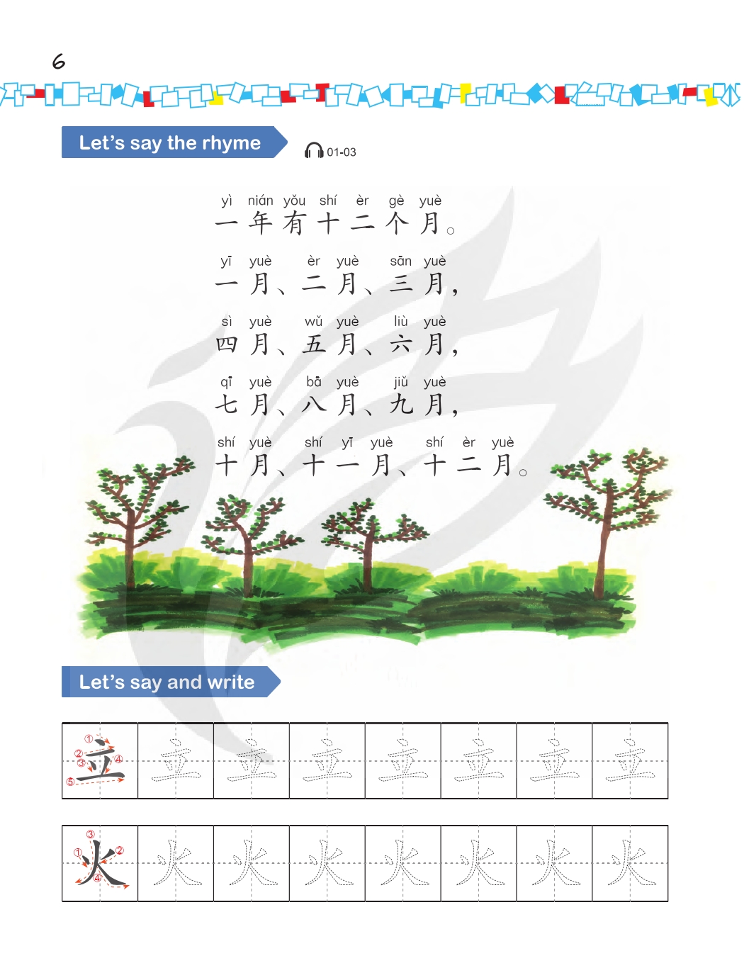The Textbook plays an important role in helping students gain knowledge of the Chinese language needed to develop their communicative competence. The Workbook takes a supporting role, providing various age-appropriate and interesting exercises and activities that serve as meaningful practice and reinforcement.