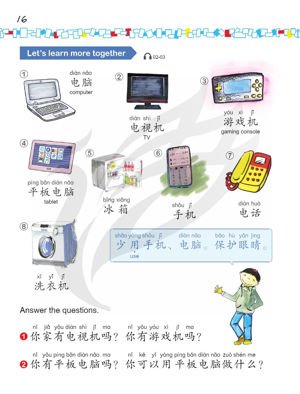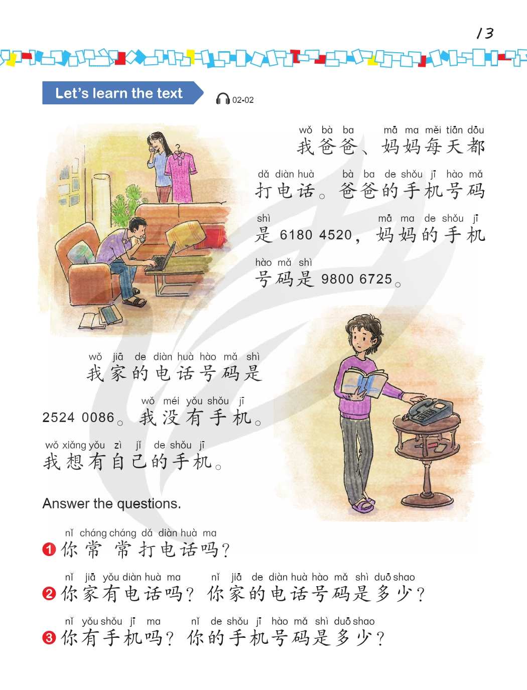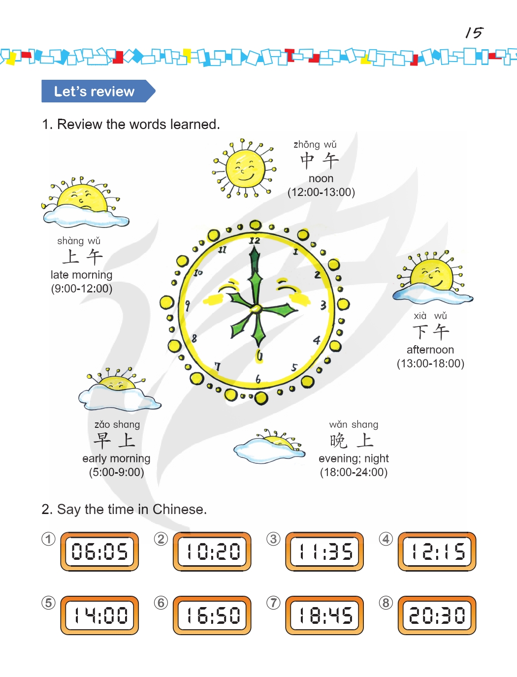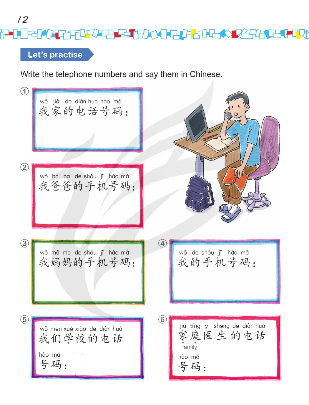 The Textbook plays an important role in helping students gain knowledge of the Chinese language needed to develop their communicative competence. The Workbook takes a supporting role, providing various age-appropriate and interesting exercises and activities that serve as meaningful practice and reinforcement.