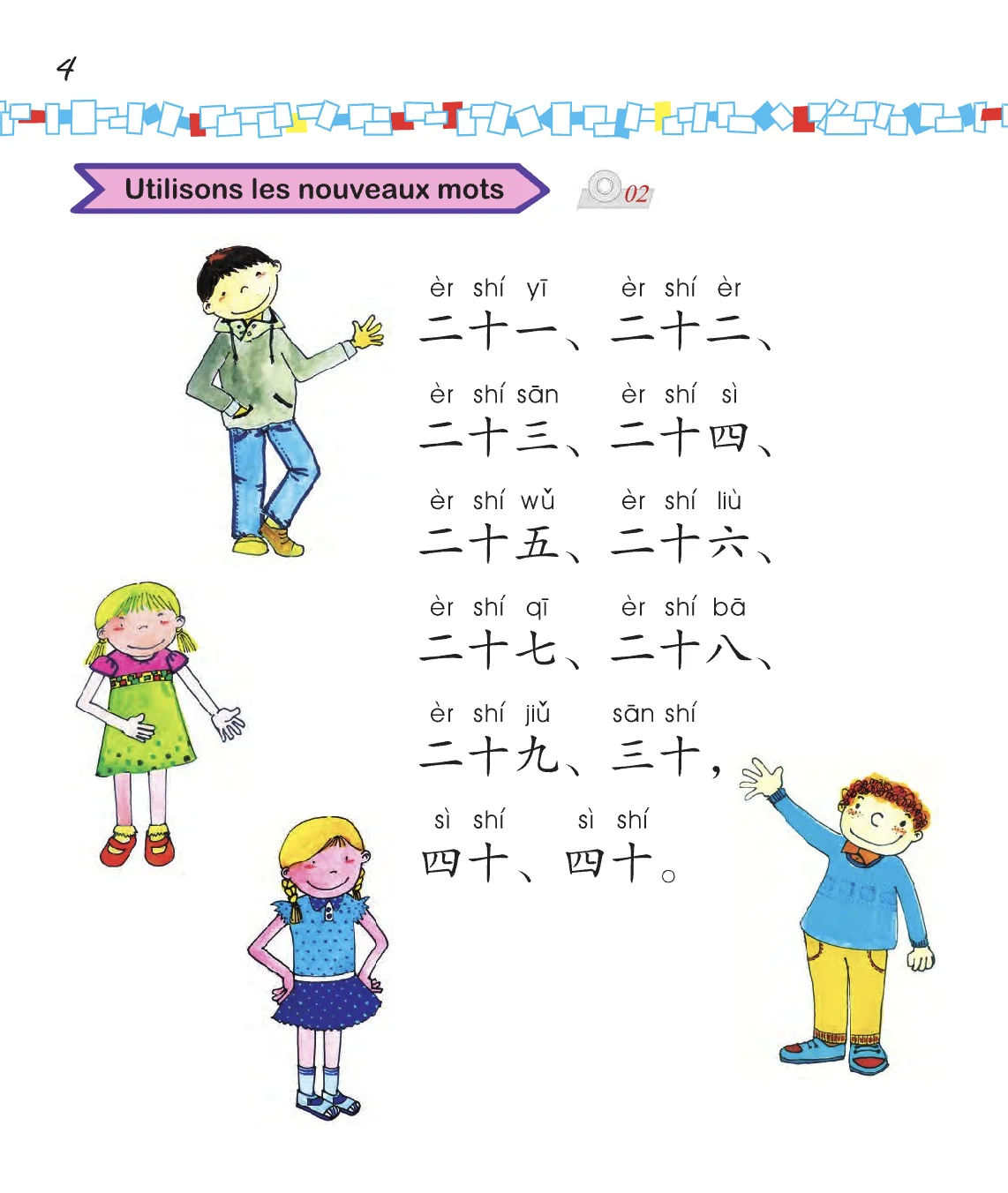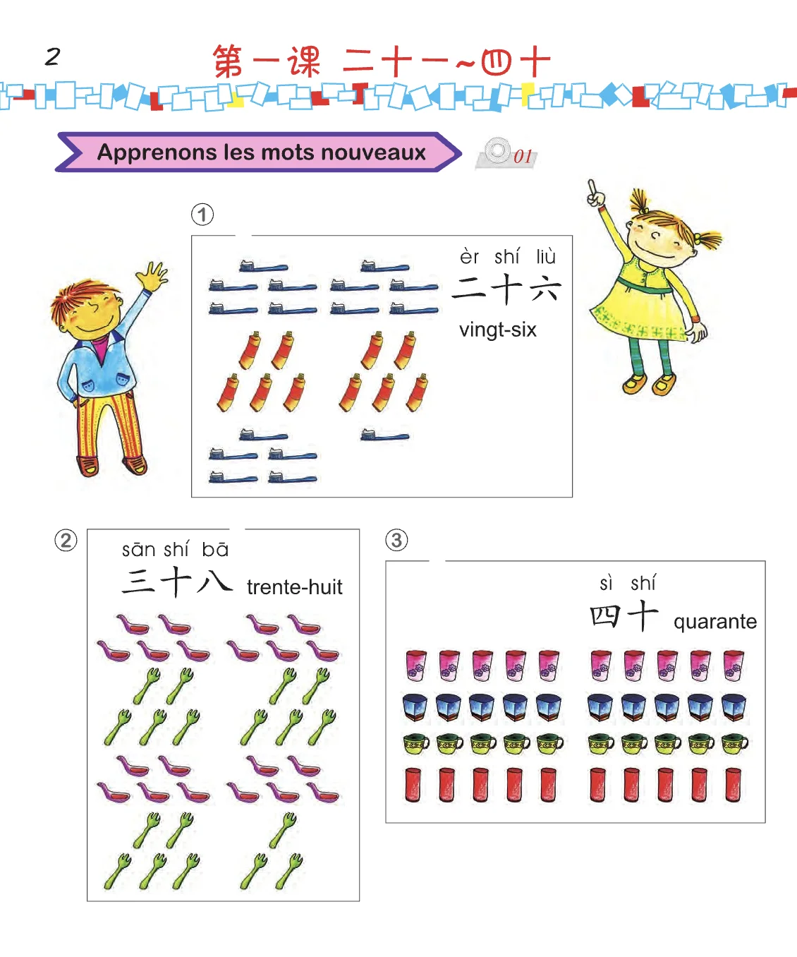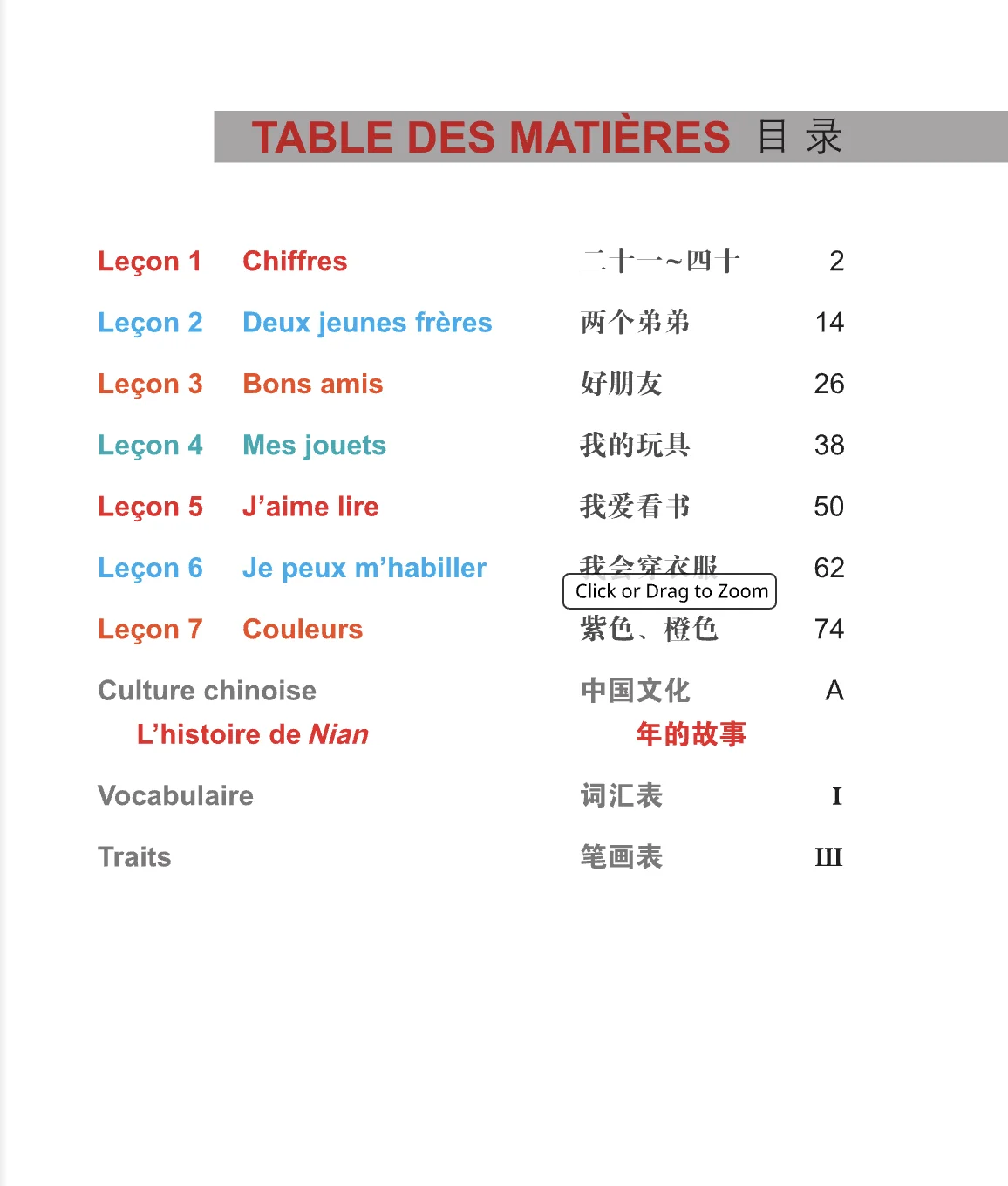 This is Textbook 2a (French Edition) in the series, with altogether 7 lessons encompassing such topics as brothers and sisters, friends, colors and hobbies, etc. It can be used in the first semester of Year 2 at primary school.
