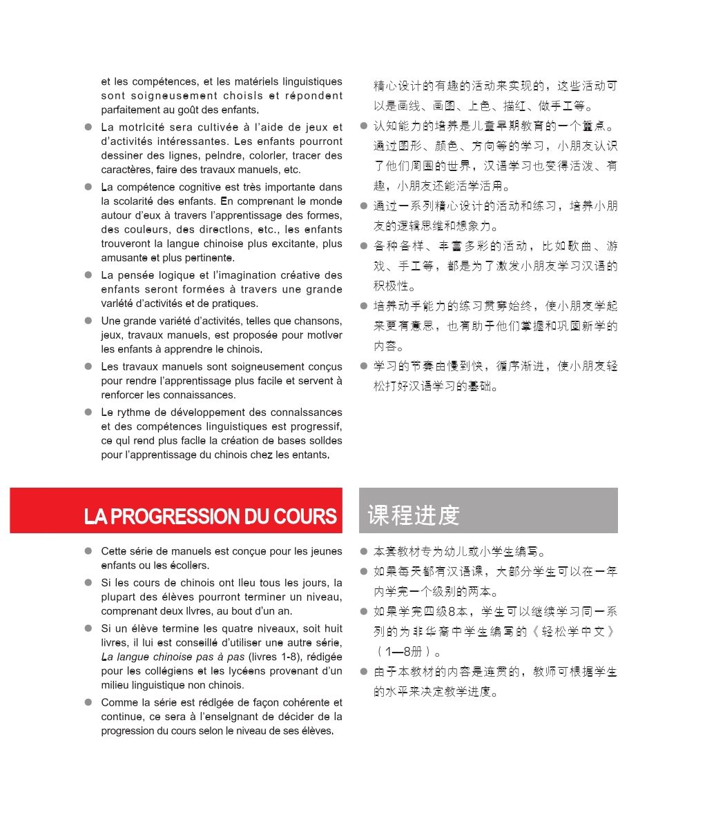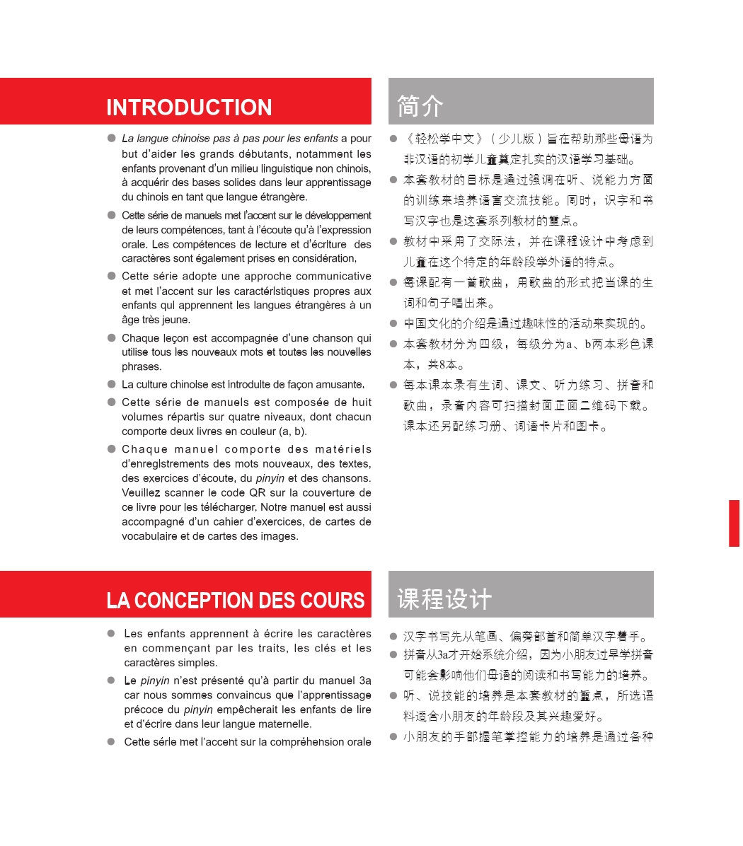 Easy Steps to Chinese for Kidsis a series of Chinese textbooks specifically designed for kids from non-Chinese backgrounds. It covers four levels, each made up of Textbooks a and b (each with a CD), Workbooks a and b, a set of color picture flashcards (for students) and a set of word cards (for teachers).
