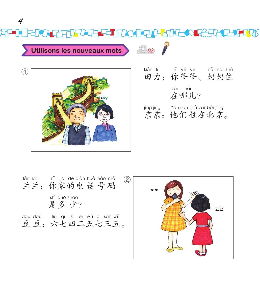 This is Textbook 4a in the series, which is beautifully illustrated and printed in full color. It has altogether 7 lessons encompassing such topics as telephone number, languages, daily routine, means of transport, etc. This volume attaches more importance to the review of the pinyin learned previously, teaches three radicals in each lesson besides reviewing the simple characters learned before, provides more exercises on character and radical writing, sentence making and textual expression, and devotes an independent section to listening. Through these efforts, it helps improve students’ integrated language skills.