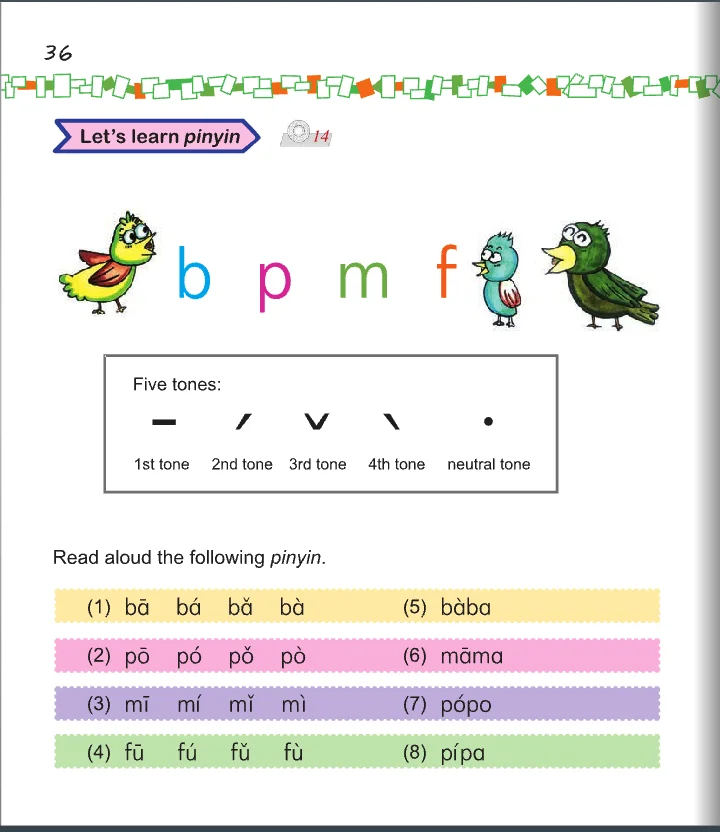 Easy Steps to Chinese for Kids is a series of Chinese textbooks specifically designed for kids from non-Chinese backgrounds. It covers four levels, each of which is made up of two volumes: a and b (each with a CD). This series has four characters in it, namely Ding Yi, Tian Li, Jingjing and Lele, who are primary school students from China and abroad. Beautifully designed illustrations, simple sentences and dialogues and lovely songs among other means are adopted to develop the kids’ interest in learning Chinese and help them lay a solid Chinese foundation by mastering such fundamental Chinese knowledge as numbers, basic strokes, self-introduction and daily expressions. Chinese culture is introduced on the last two pages of each volume together with some color stickers for practice. Each volume comes with a CD with all the lessons and songs on it.