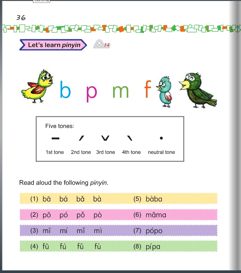 Easy Steps to Chinese for Kids is a series of Chinese textbooks specifically designed for kids from non-Chinese backgrounds. It covers four levels, each of which is made up of two volumes: a and b (each with a CD). This series has four characters in it, namely Ding Yi, Tian Li, Jingjing and Lele, who are primary school students from China and abroad. Beautifully designed illustrations, simple sentences and dialogues and lovely songs among other means are adopted to develop the kids’ interest in learning Chinese and help them lay a solid Chinese foundation by mastering such fundamental Chinese knowledge as numbers, basic strokes, self-introduction and daily expressions. Chinese culture is introduced on the last two pages of each volume together with some color stickers for practice. Each volume comes with a CD with all the lessons and songs on it.
