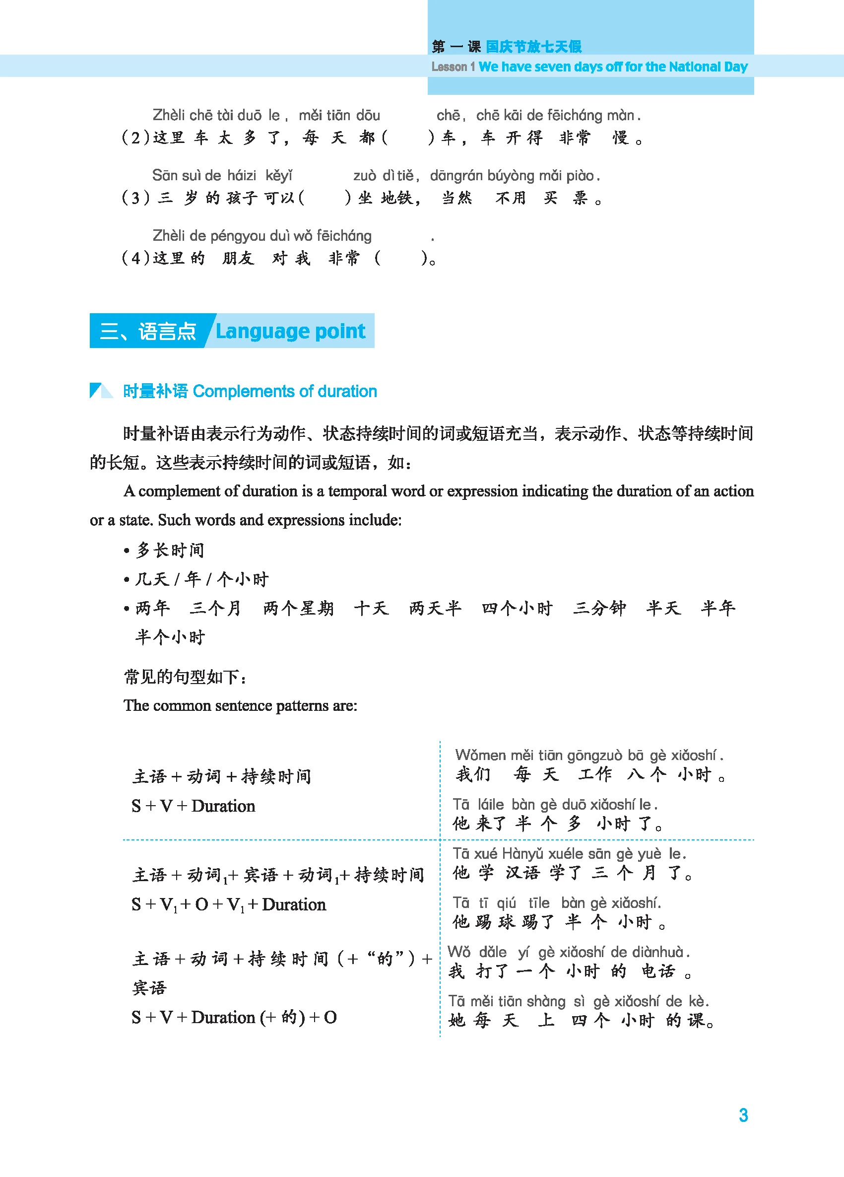 1. 为短期速成教学量身定制,初级四册全部中英文对照