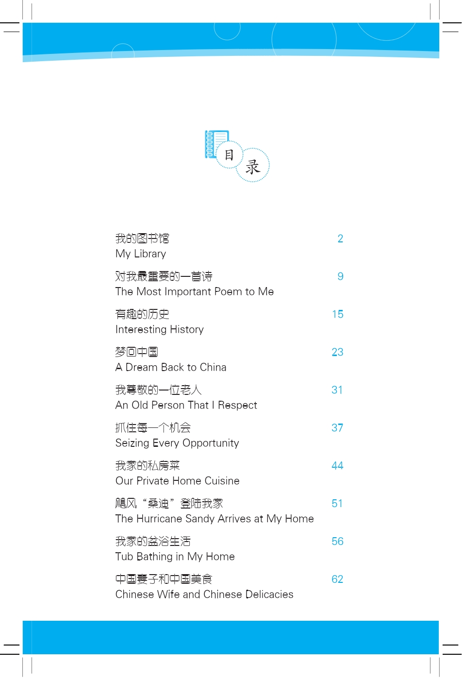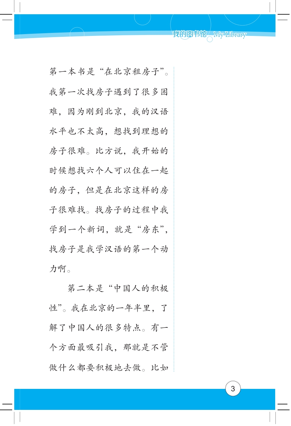 This book is written for adults, suitable for students whose Chinese proficiency reaches New HSK Level 6 and who have mastered 5000 words. It includes 10 essays, talking about daily life, social life, and school life, etc. in smooth prose and with true feelings.