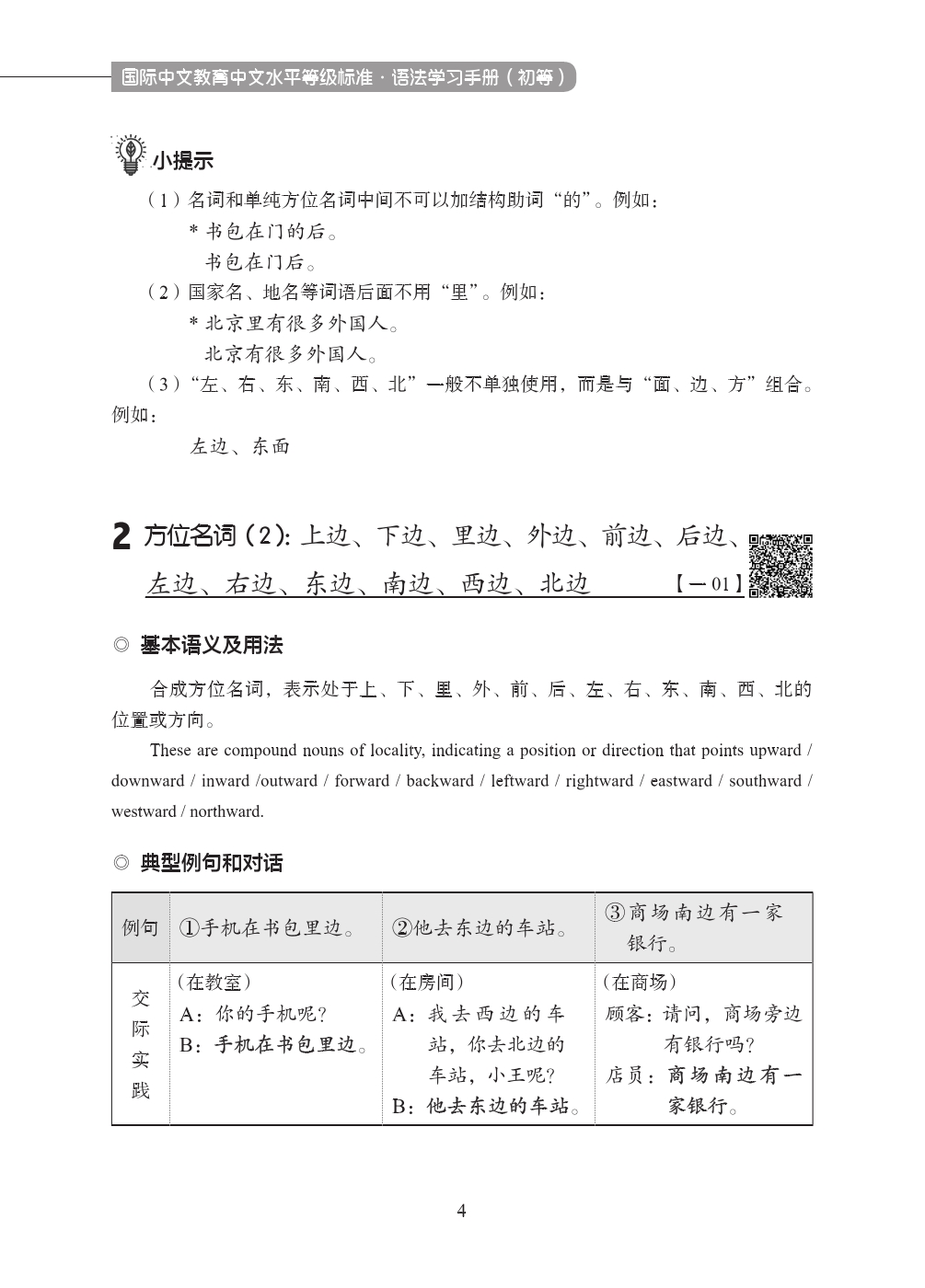 Grammar Learning Manual Elementary Level English-Annotated Chinese Hanyu Pinyin Book