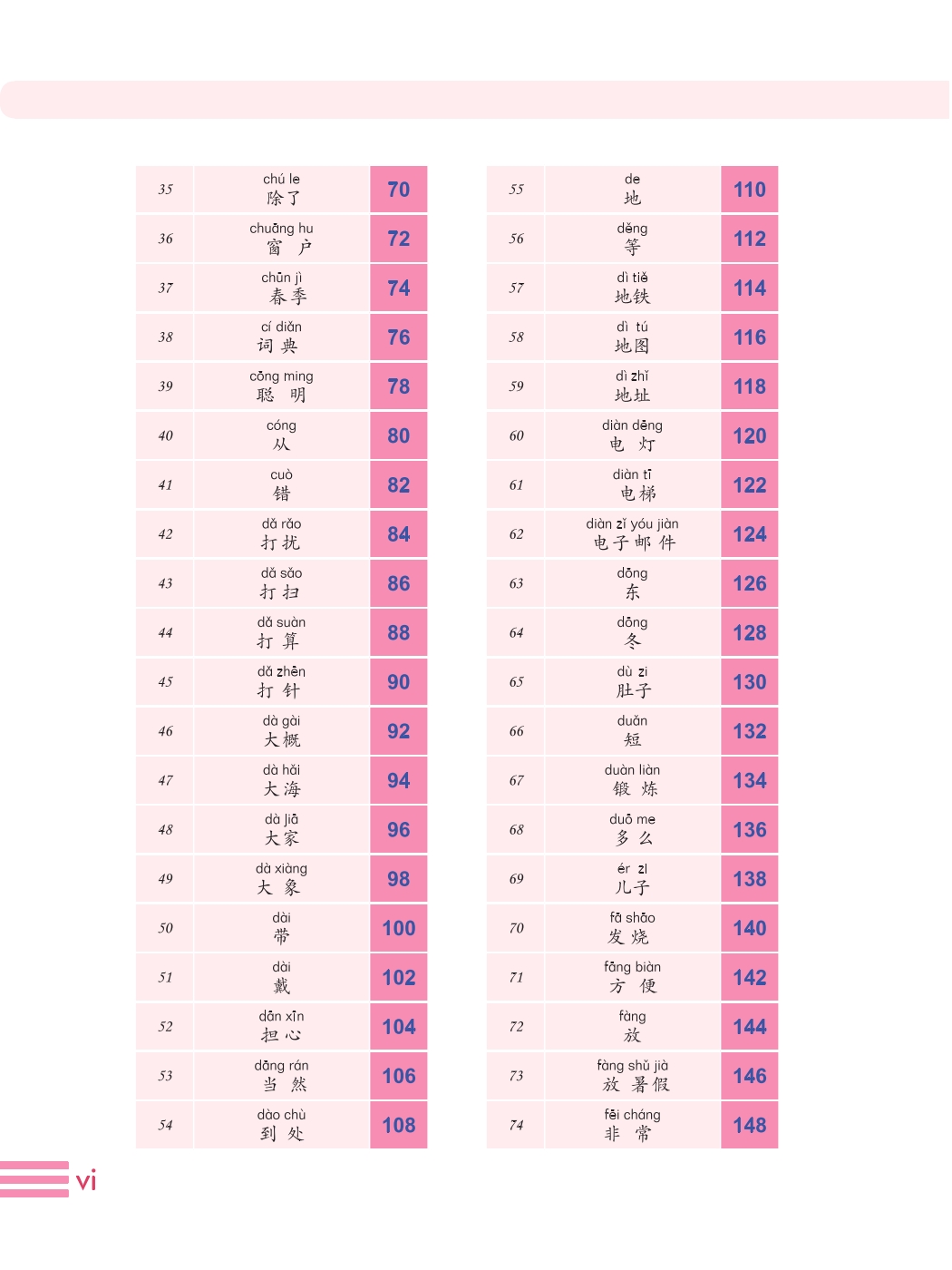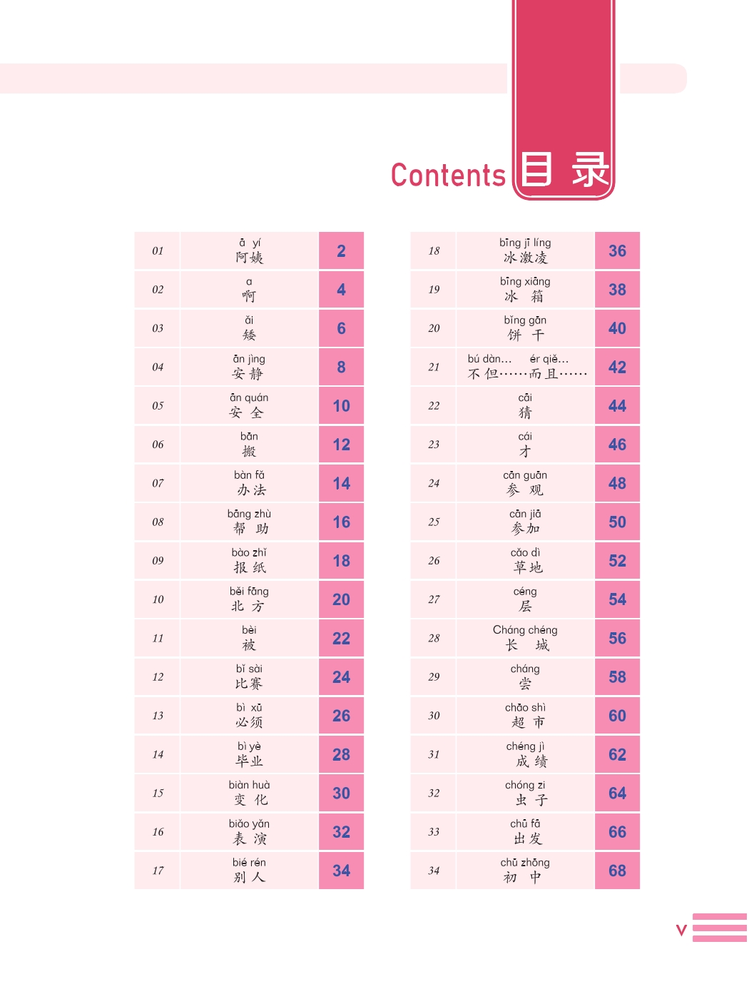 The series of Graphic YCT Vocabulary is designed on the basis of YCT Test Syllabus & Guide (2016 Edition) (Levels I-IV) compiled by the Confucius Institute Headquarters/Hanban, aiming to help Chinese language learners in primary and secondary schools understand and master YCT vocabulary at all levels as soon as possible so that they can correctly and appropriately use YCT vocabulary in their examinations and communication.