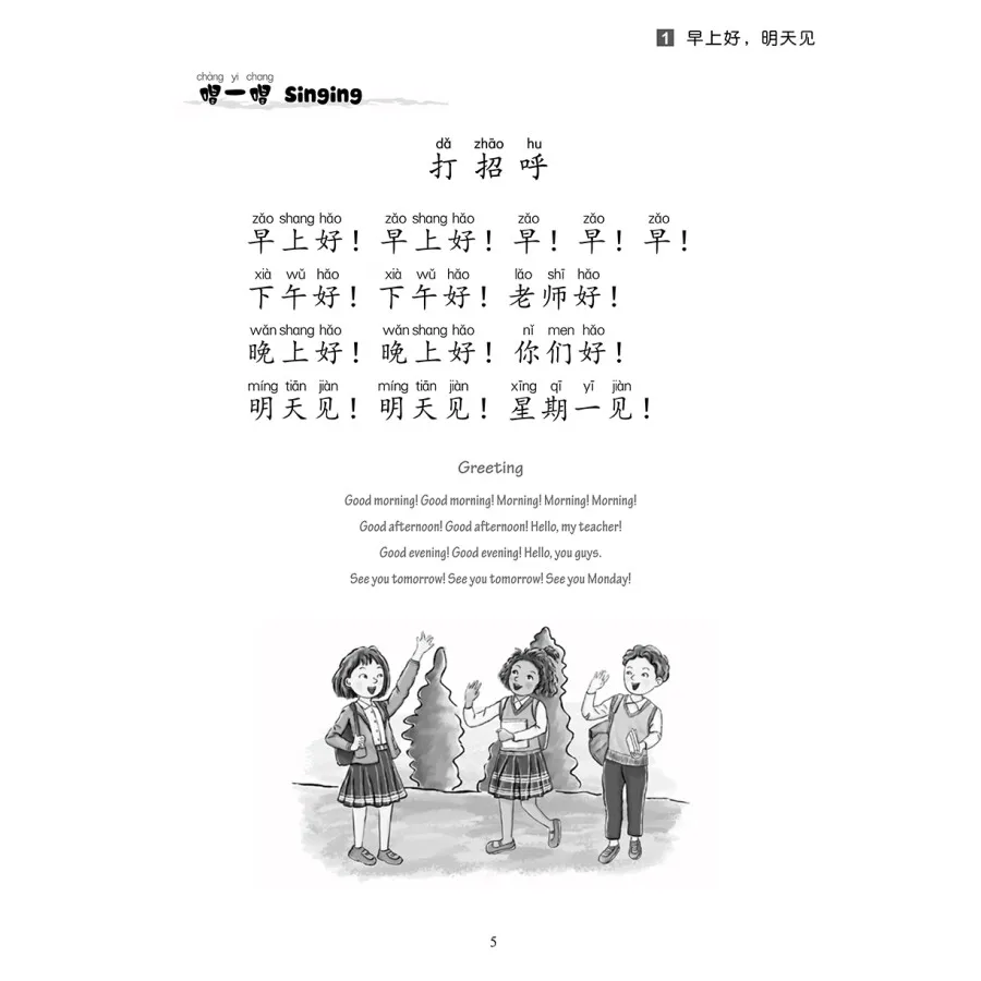 Hello, Chinese is designed and compiled mainly based on the teaching philosophy stated in Standards for Foreign Language Learning in the 21st Century and ACTFL's Performance Guidelines for K--12 Learners. Hello, Chinese highlights the "5Cs", namely, Communication, Cultures, Connections, Comparisons, and Communities.