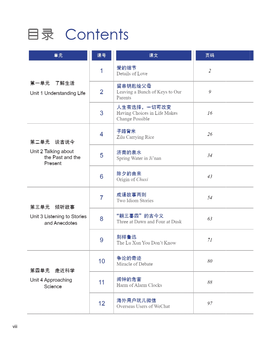 The whole series is divided into six levels matching the HSK test, with one volume for each of Levels 1-3 and two volumes for each of Levels 4-6, totaling nine volumes. With a textbook, a workbook and a teacher’s book in each volume, there are altogether 27 books.