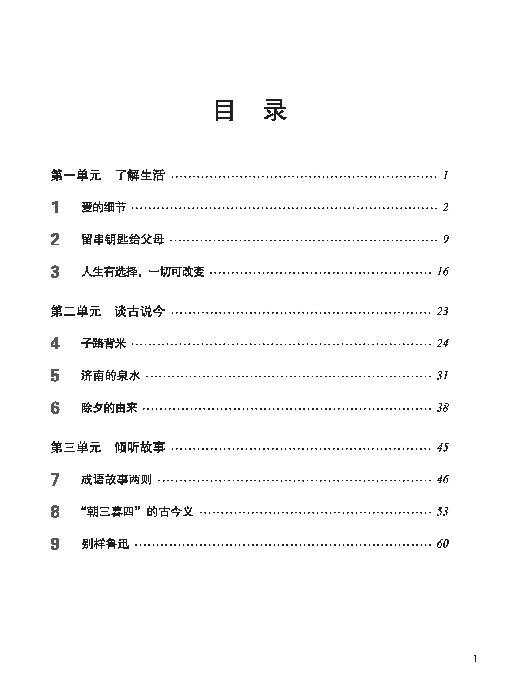 The whole series is divided into six levels matching the HSK test, with one volume for each of Levels 1-3 and two volumes for each of Levels 4-6, totaling nine volumes. With a textbook, a workbook and a teacher’s book in each volume, there are altogether 27 books.