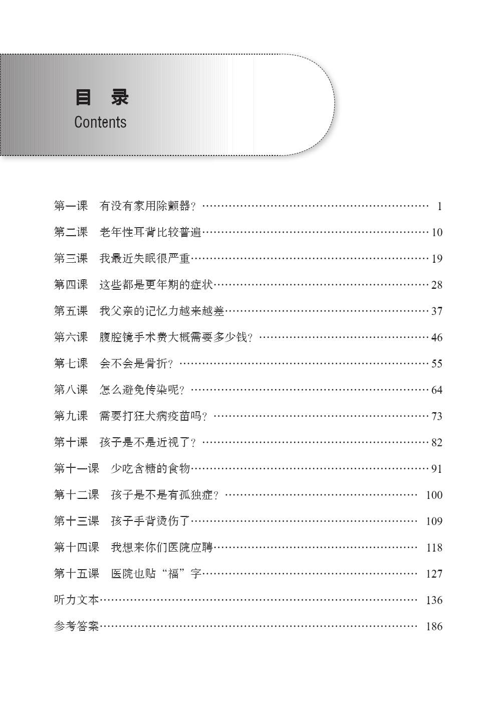 I Am a Medical Student: Preclinical Medicine Chinese is a series of integrated medical Chinese textbooks for beginners studying medical science in China under the guidance of the concept of “Chinese + medicine”. It combines the learning of daily Chinese with the improvement of HSK test-taking ability, and combines medical knowledge with social and cultural knowledge, so as to achieve the teaching goal of integrating Chinese, medicine and culture.