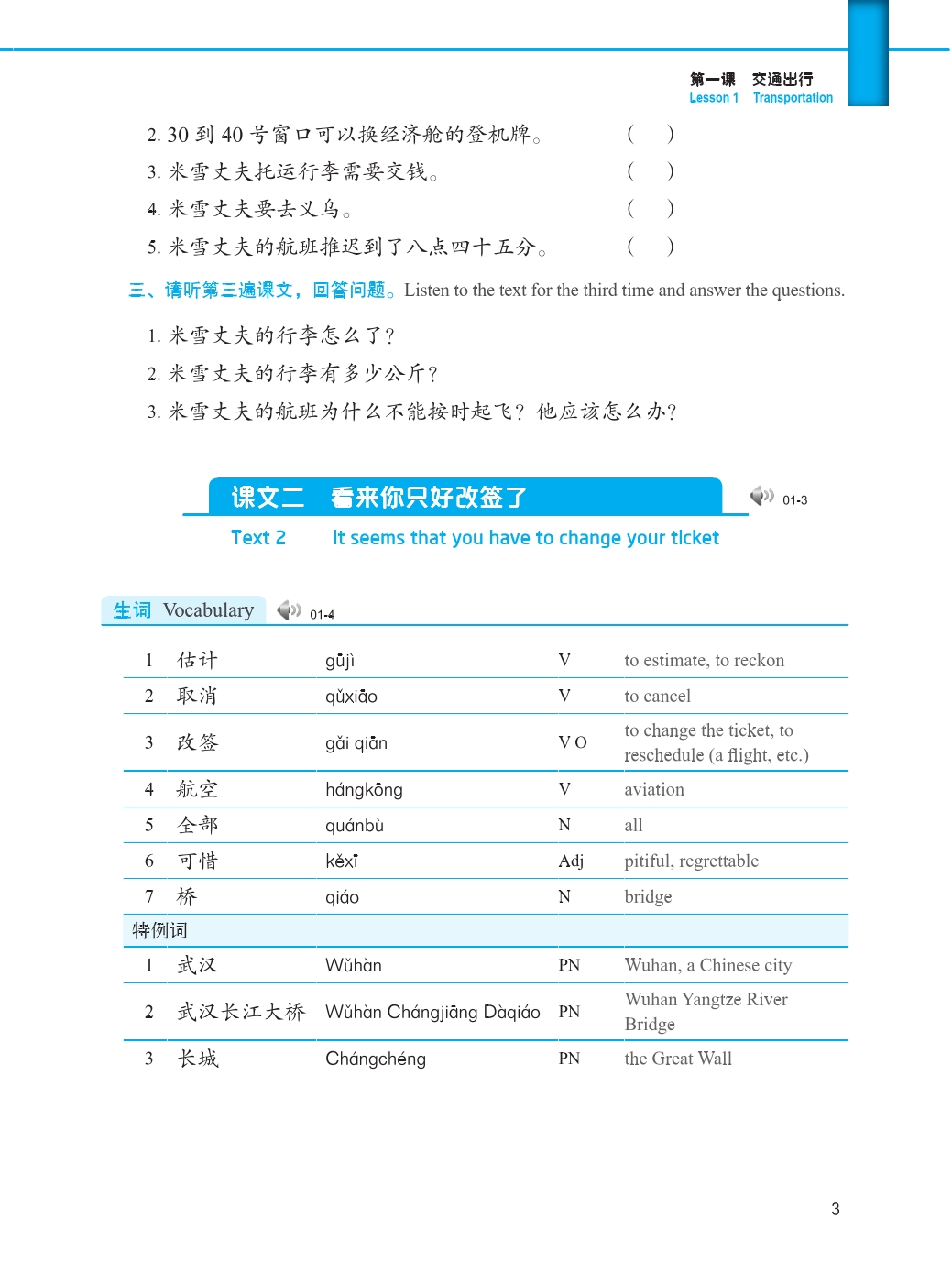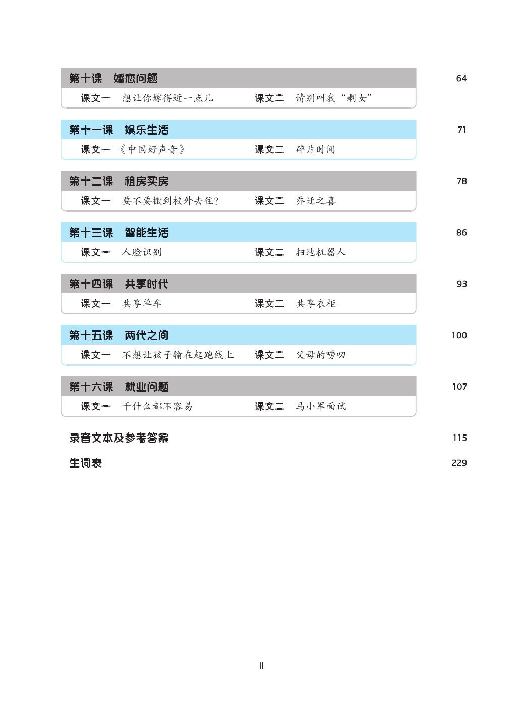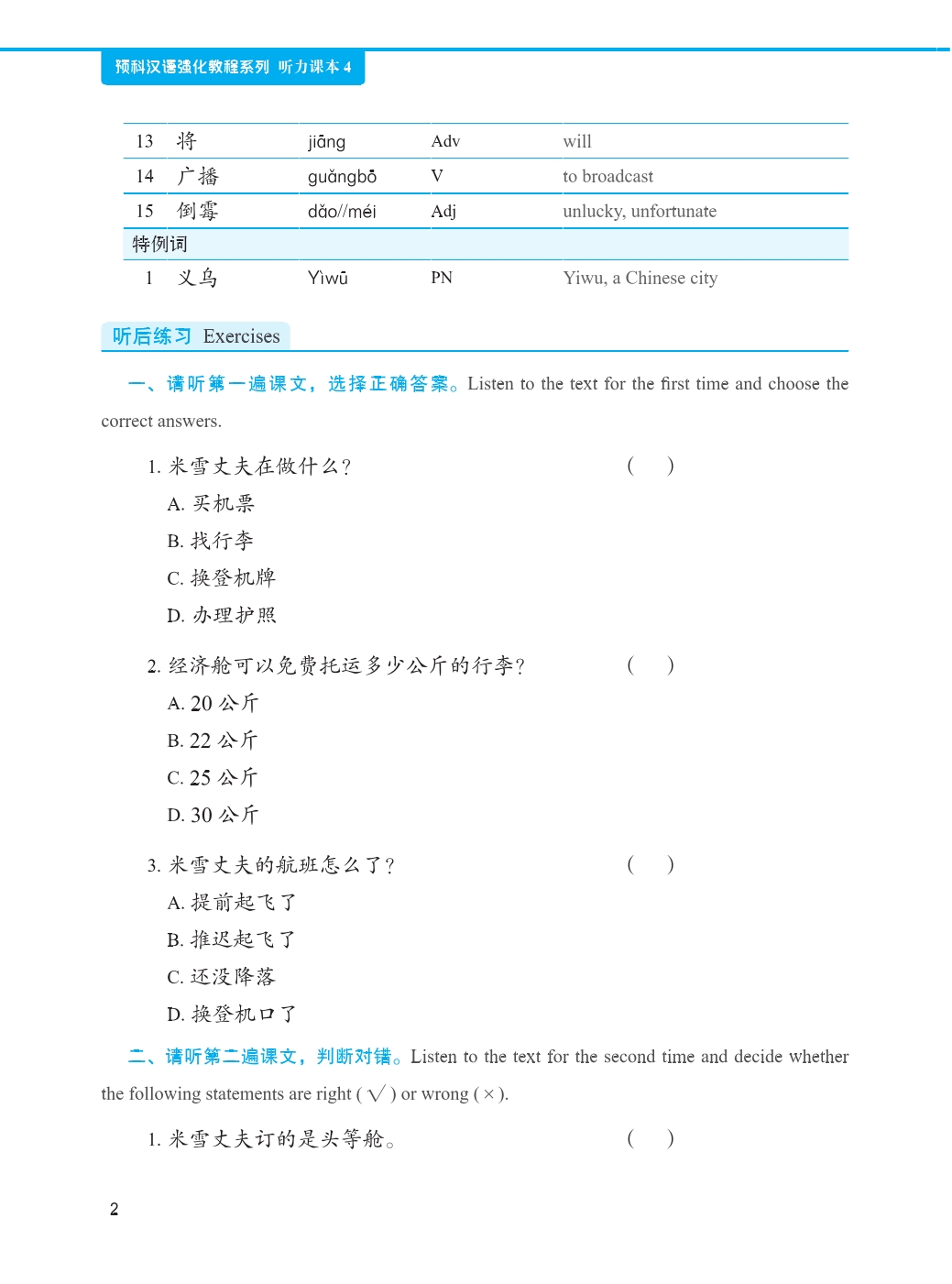 This is the fourth volume of the listening textbooks designed for beginner-level students of Chinese. It has 16 lessons, each of which has such parts as “Text”, “Exercises”, “Let’s Talk” and “Challenge Ourselves”.