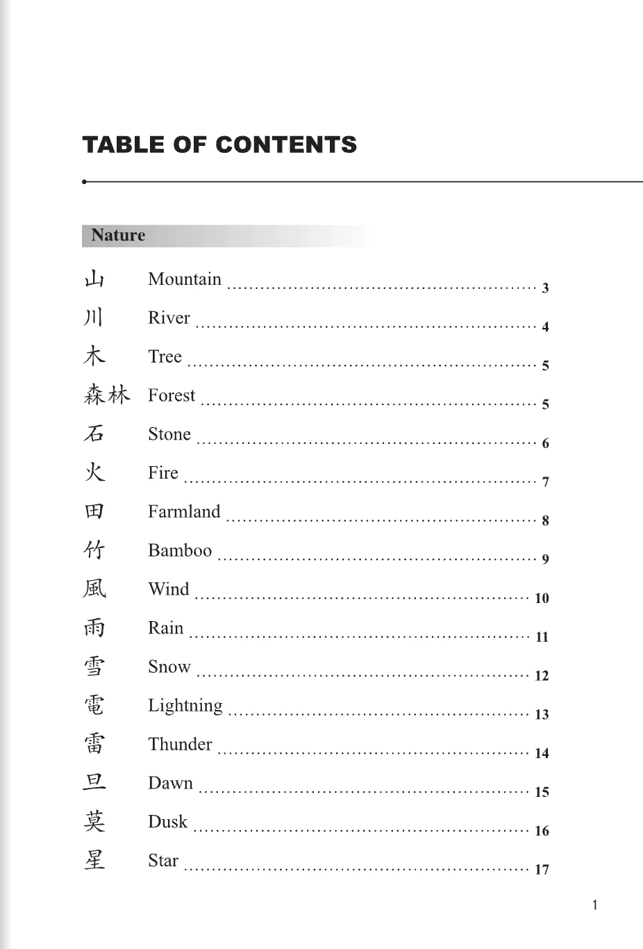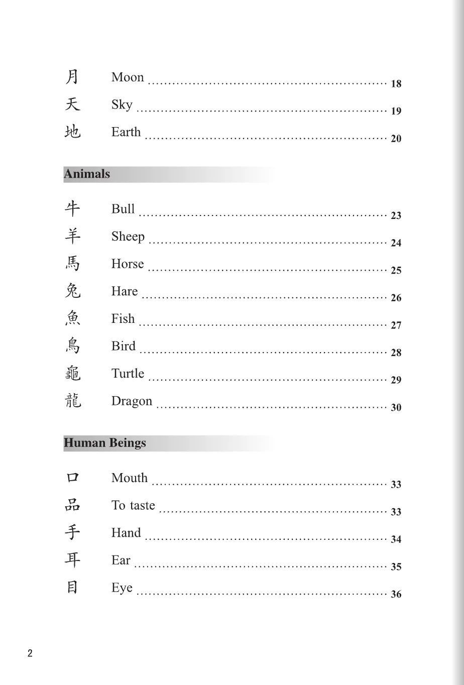 This is a book in English, including a total of 82 Chinese characters demonstrated in five parts, namely “Nature”, “Animals”, “Human Beings”, “Objects” and “Chinese Style”.