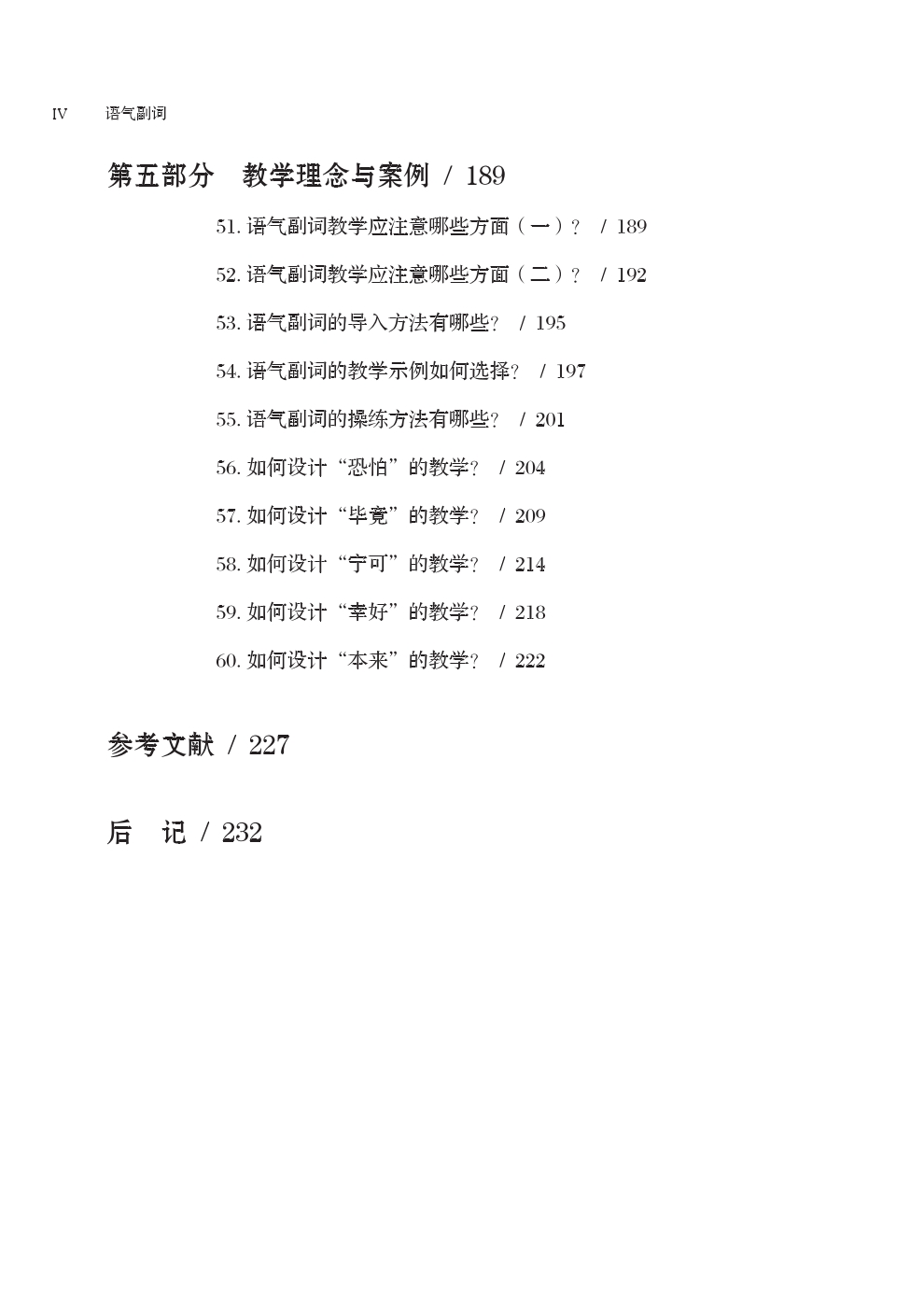 Designed for front-line teachers engaged in teaching Chinese as a second language and based on the principles of universality and practicability, this book comprehends 60 common problems of modal adverbs in second language teaching from three aspects including theory, knowledge acquisition and teaching. In the theoretical part, the common problems of modal adverbs as a “class” are answered from a macro perspective. In the knowledge acquisition part, the syntactic, semantic, and pragmatic problems of individual modal adverbs and the identification of common confusable words are analyzed based on the international students’ acquisition bias and common problems. In the teaching part, the practical problems of modal adverbs in teaching and learning are discussed in the light of the combination of theory and practice.