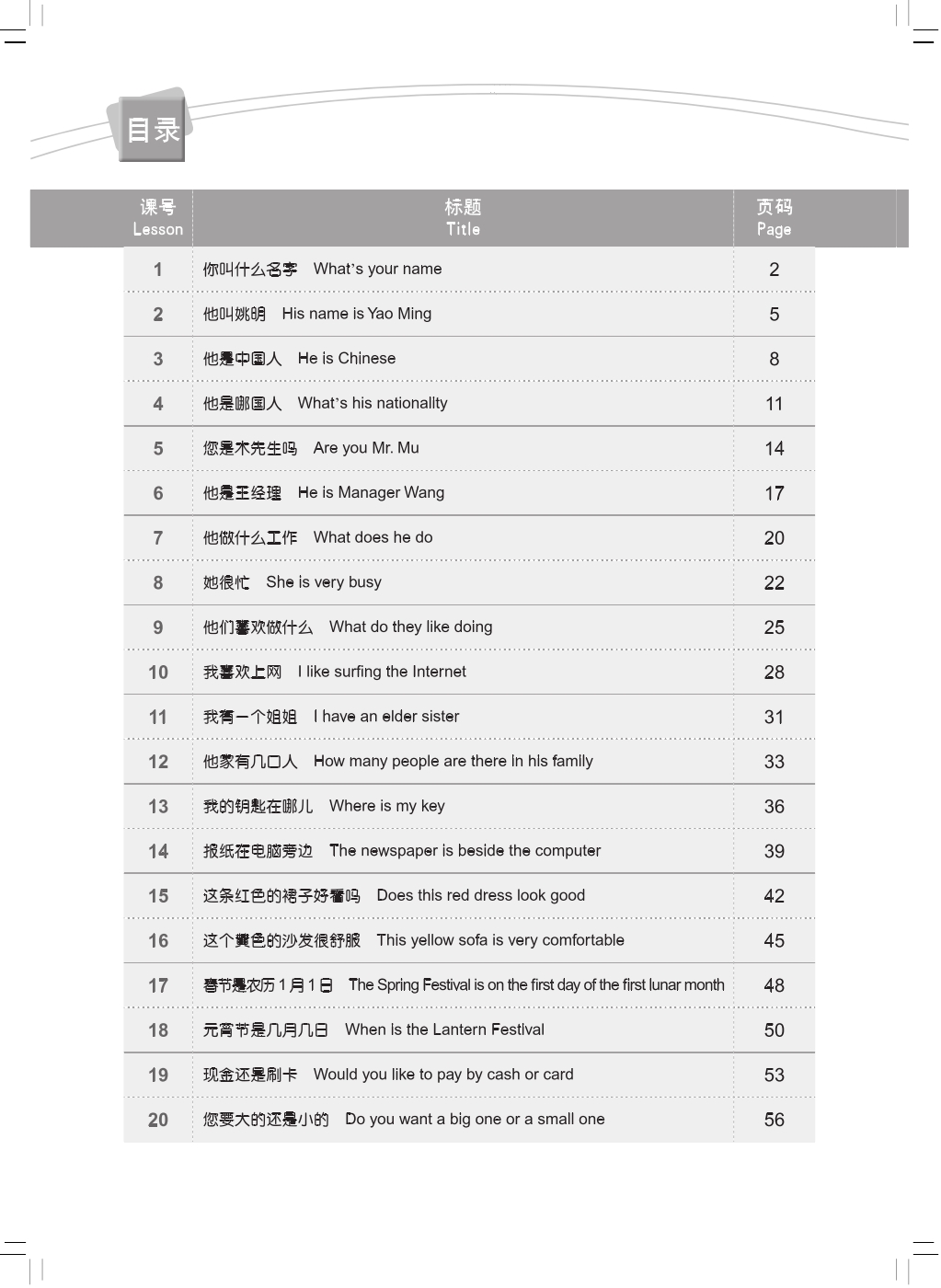 New Concept Chinese, a series of Chinese textbooks for adults, is suitable for both self-teaching and classroom teaching. Observing the principle of “making Chinese easier to learn”, this series presents practical, concise and interesting teaching materials and employs easy, flexible and effective teaching methods so that students and teachers could learn and teach Chinese in a convenient and effective way.