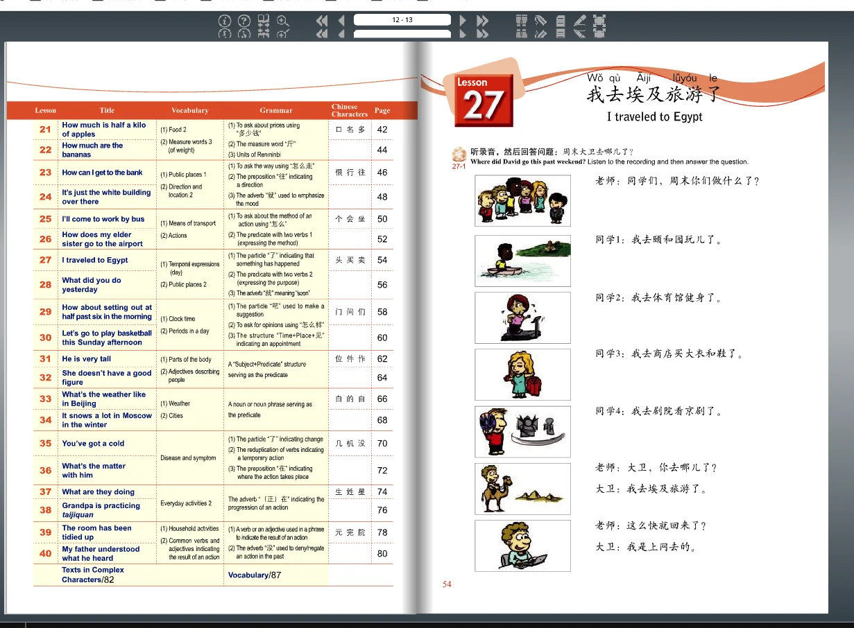 (2) Step-by-step progression: Functional topics are presented progress from “greeting” to “shopping” and then to “seeing a doctor”, and Chinese characters from single-element ones to compound ones.