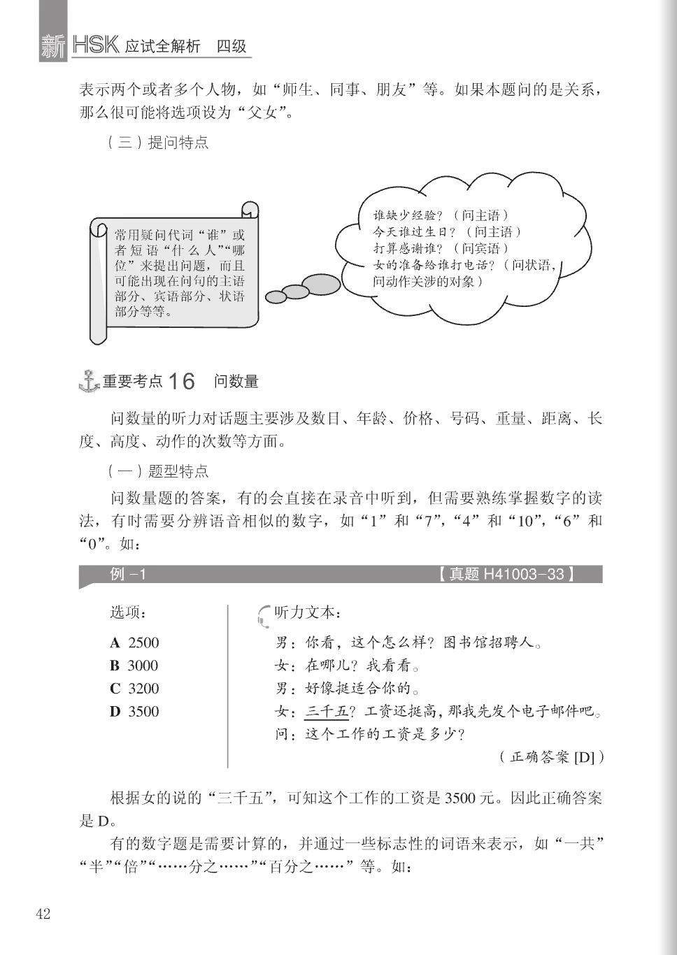 New HSK Analysis is a series of textbooks written for New HSK examinees. The series, consisting of five books, namely New HSK Analysis for Levels One and Two, New HSK Analysis for Level Three,New HSK Analysis for Level Four,New HSK Analysis for Level Five, and New HSK Analysis for Level Six, emphasizes both explanations and practice. The compilation style of the books is consistent, with the modules designed in accordance with the New HSK content. Each module is divided into several different parts, including Explanation of Question Types, Problem-Solving Skills, Important Testing Points, Past Test Analysis, and Practice of Specific Language Skills. Moreover, the series has three or four sets of mock tests in the end in order for readers to test themselves. All the exercises and mock tests have Q & A explanations for the convenience of students’ self-learning and teachers’ instructions.
