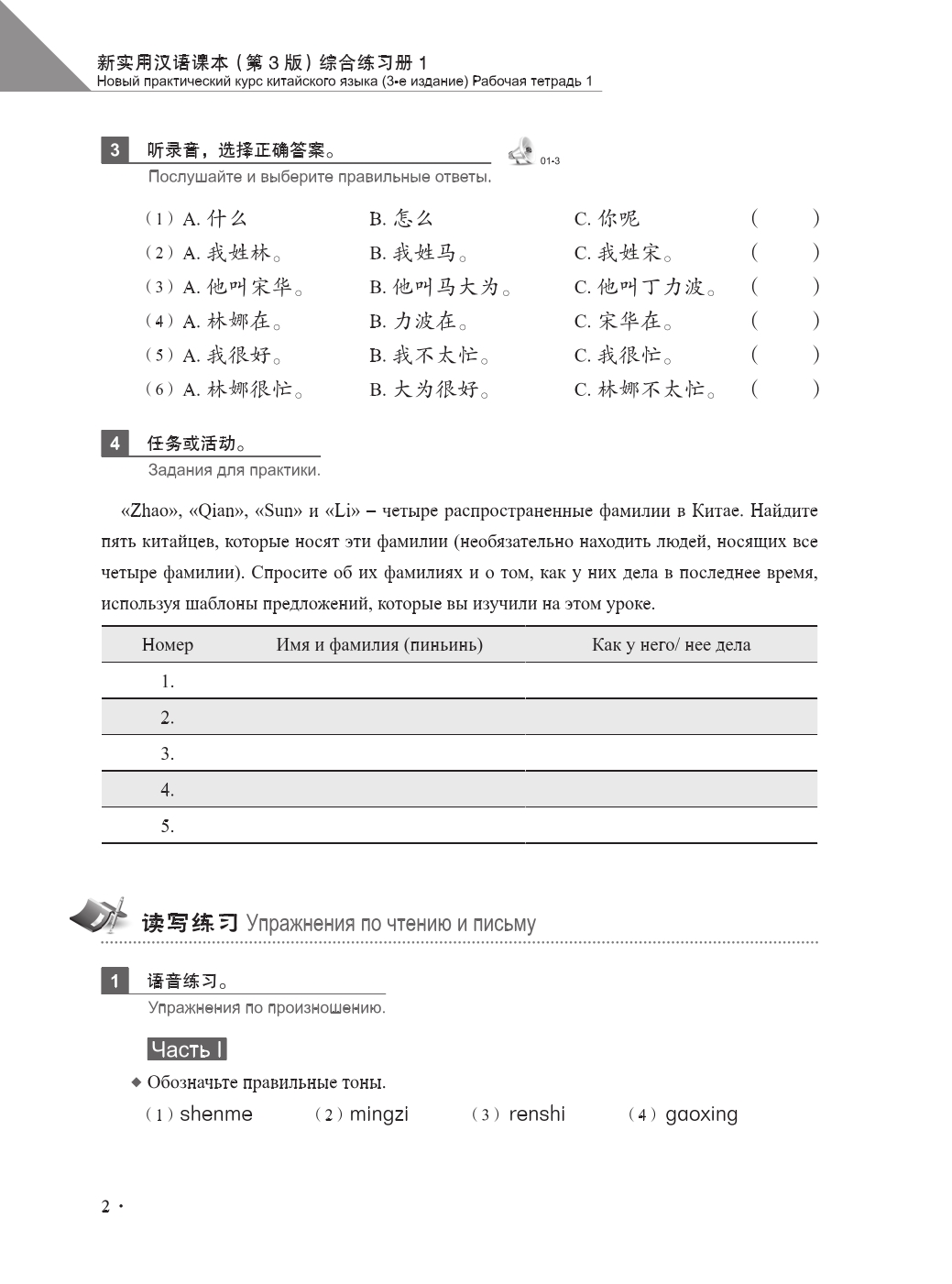 New Practical Chinese Reader (3rd Edition Annotated in Russian) Workbook 1 Learn Hanyu Pinyin Book